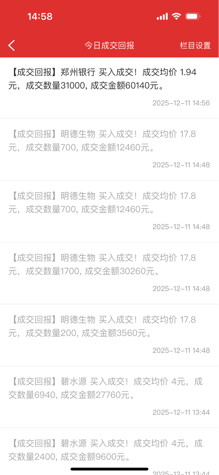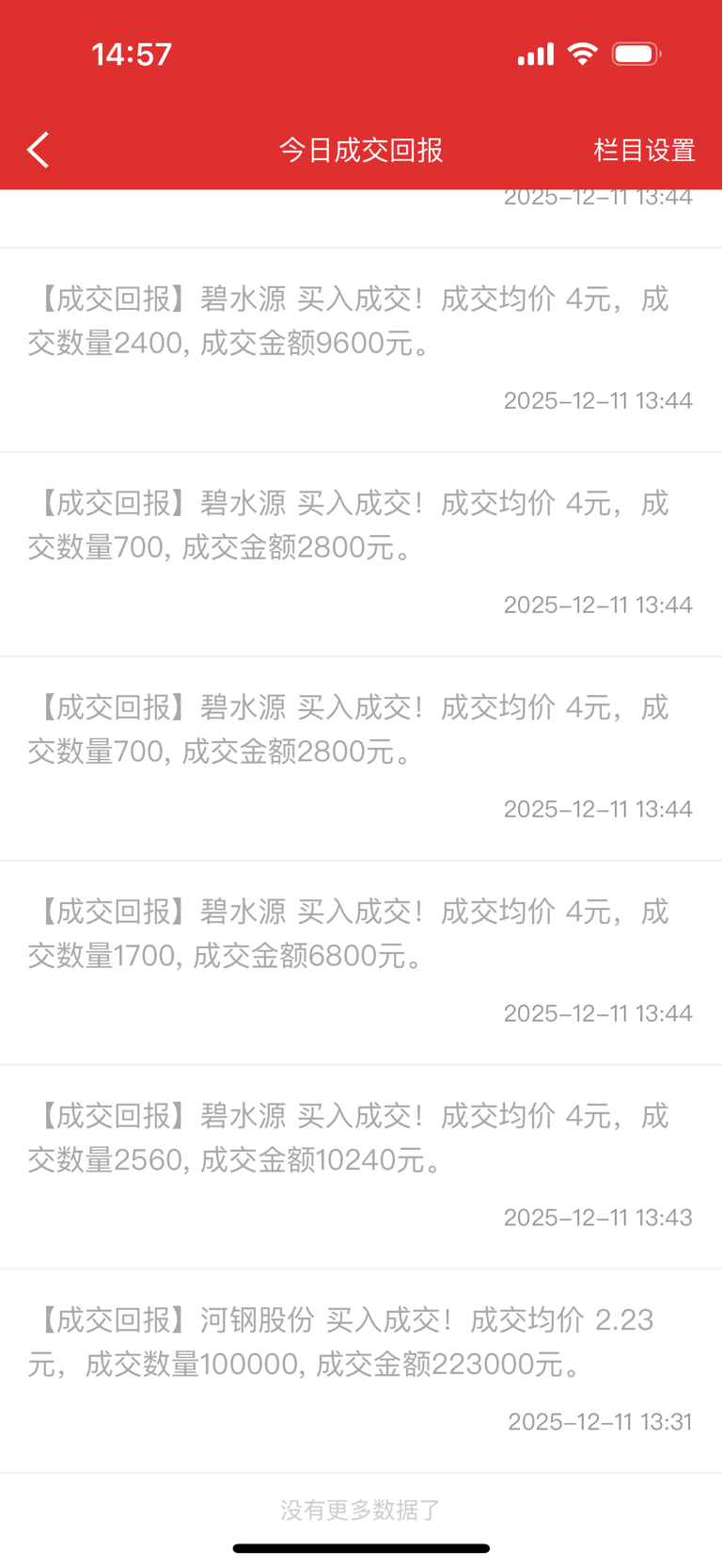 今天试盘结果,河钢股份、碧水园、明德生物、郑州银行等,创小牛市以来新低,晚上分析走势后,择股抄底。上次测试到美凯龙做了一波,获取20 %利润。