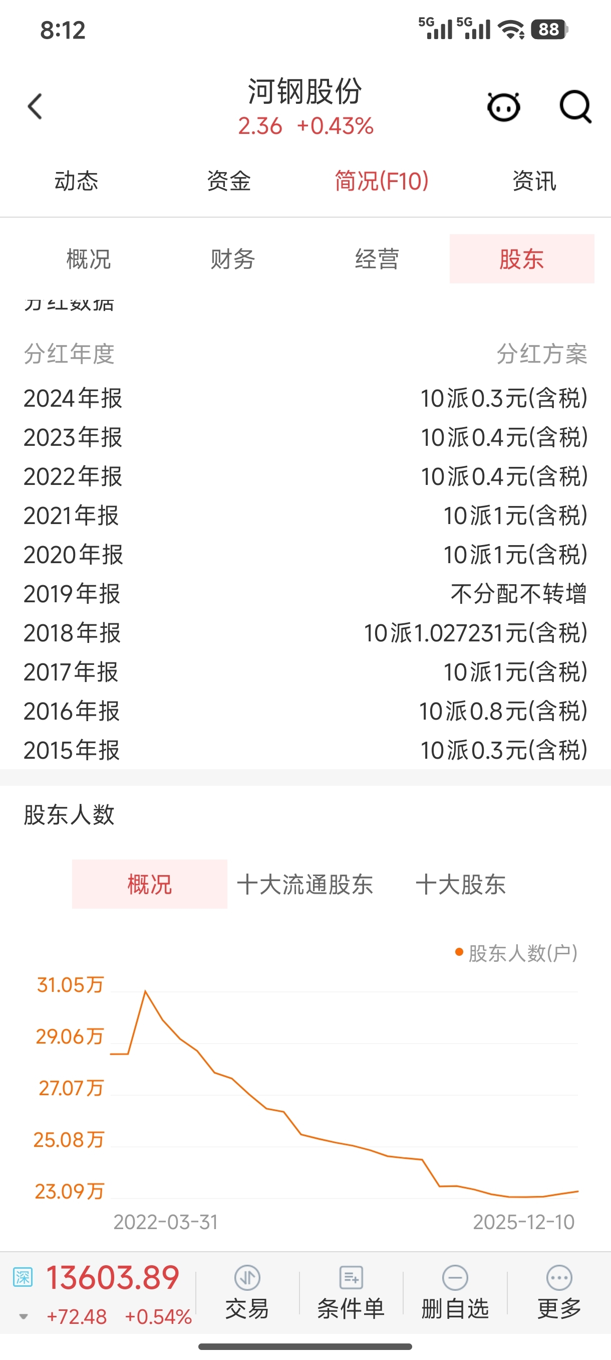 从2022年31万股东到现在的23万股东足足减少了8万名股东,2026年争取拥有