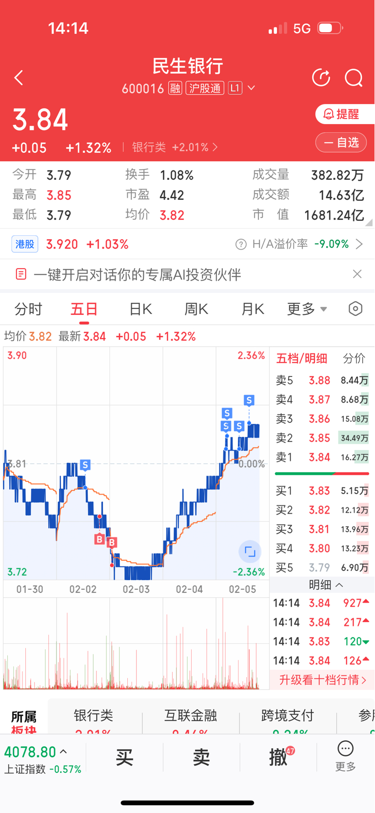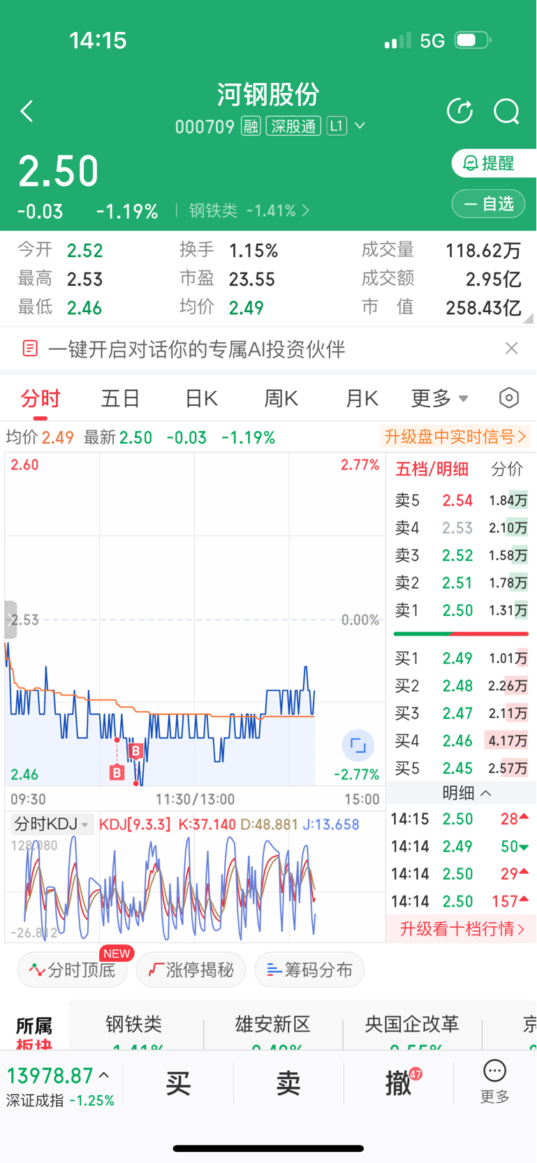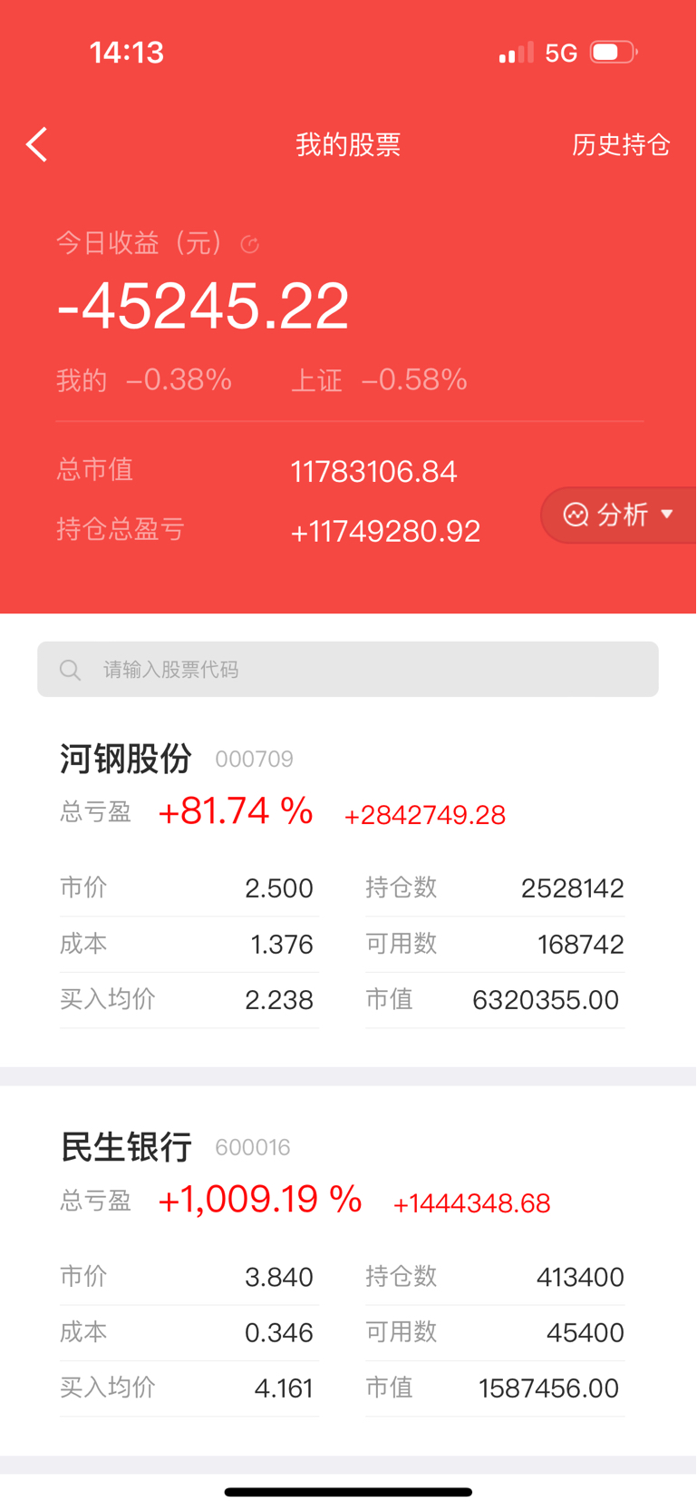 就是在河钢股份、民生银行两只股票反复做T降低成本。