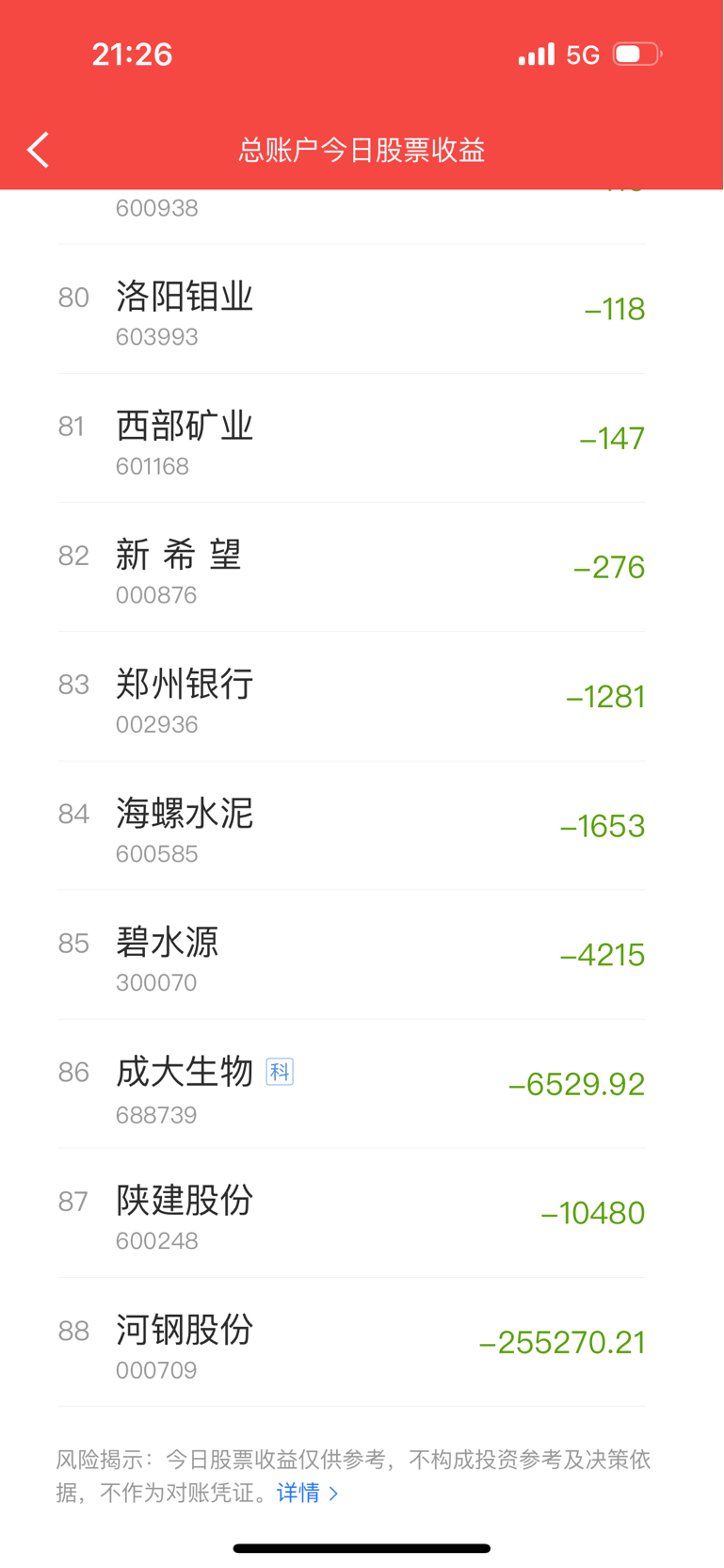 蛇年股票交易收官结束,今天河钢股份利润回撤了25.5万元,拖累了2026年的收益,我过于求稳,重仓河钢股份,错过了:贵金属、有色金属、算力、半导体、芯片、AI等热门题材股。属于选股低等水平。期待马年河钢股份有所表现,与大家共同盈利赚钱!