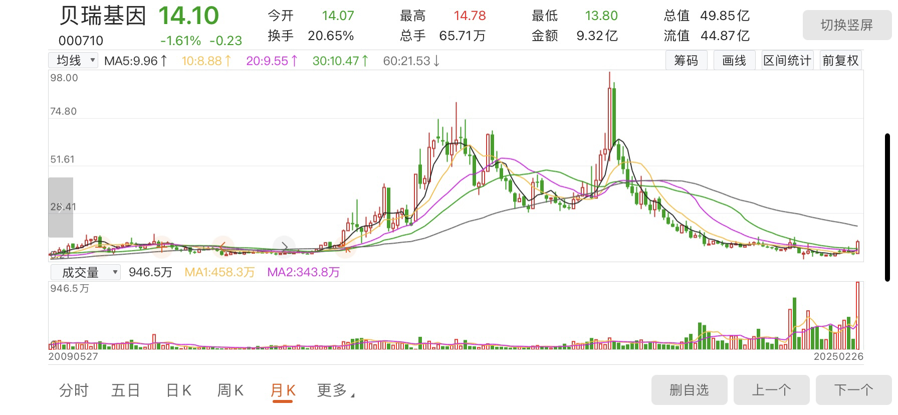$贝瑞基因(SZ000710)$ 老乡别走,月线刚从地上起来