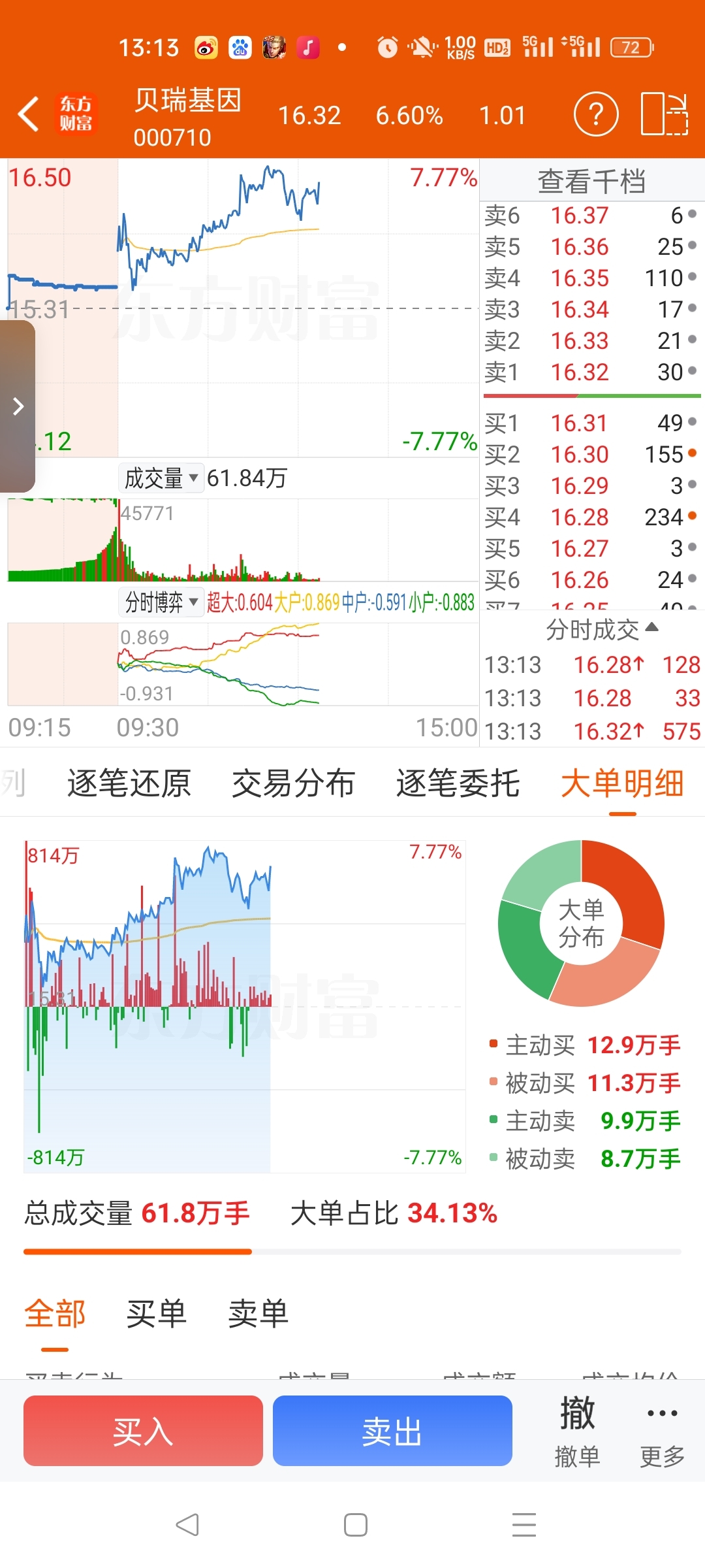 $贝瑞基因(SZ000710)$ 加油涨停明天加速