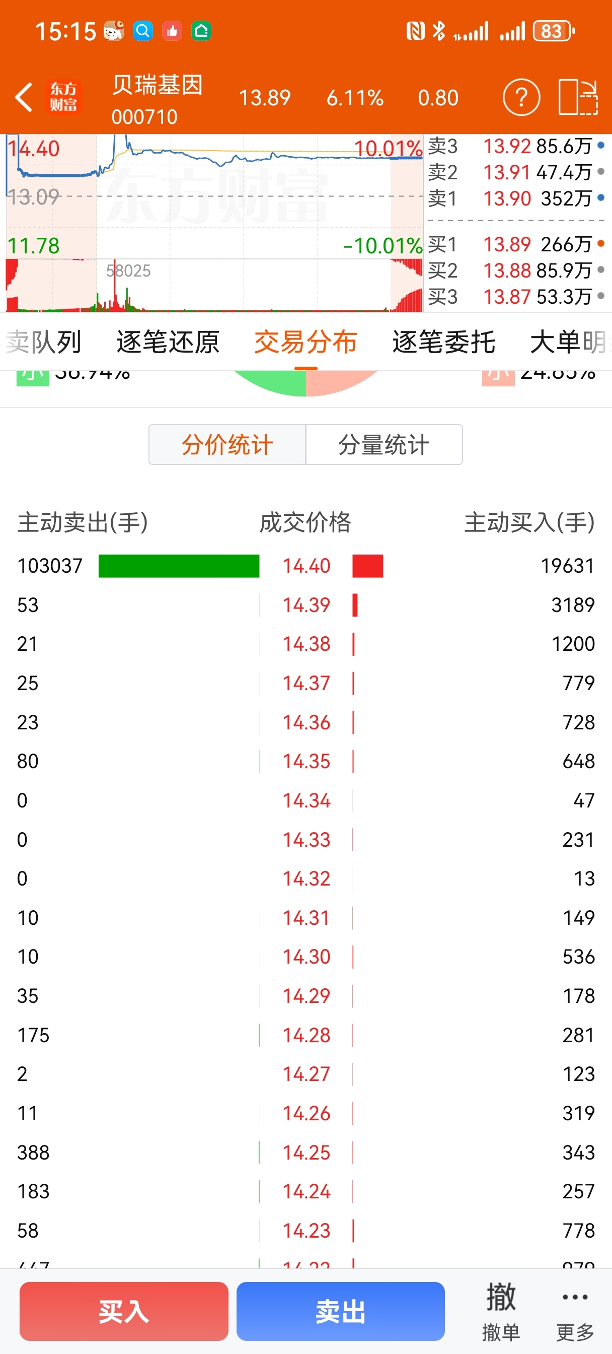 $贝瑞基因(SZ000710)$ 不是啊,哥们,你这涨停板出了这么多货?今天上午那一波是拉高出货的?其余价位就没有多少手成交的