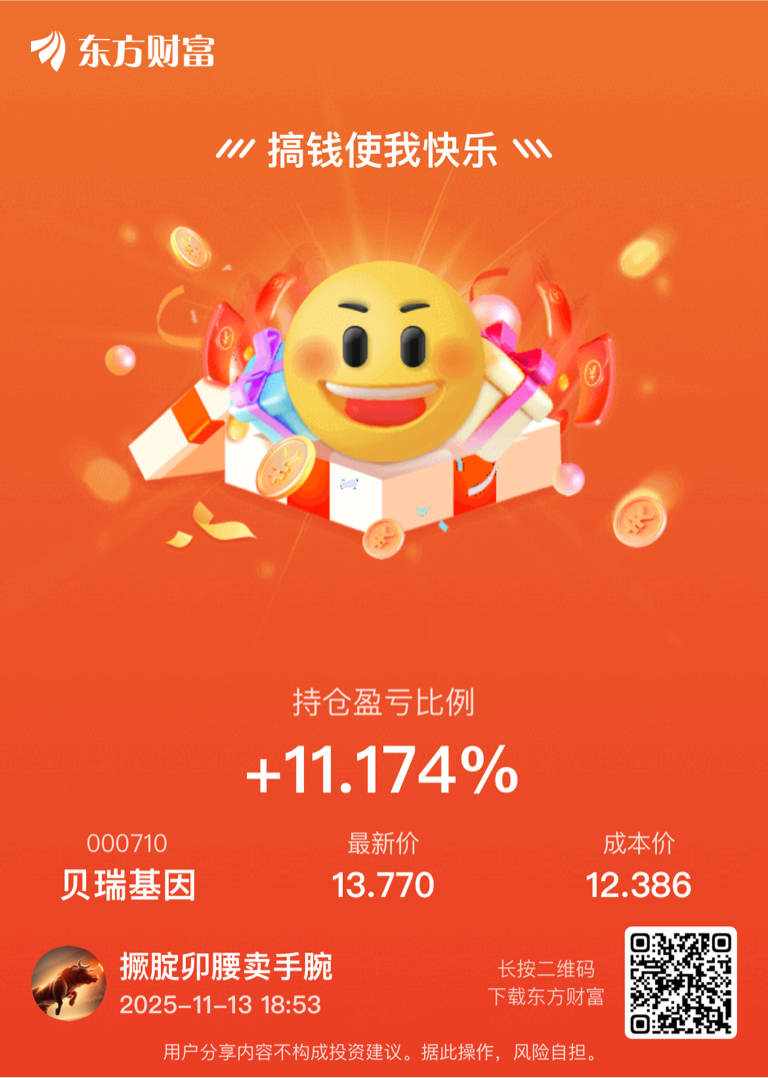 $贝瑞基因(SZ000710)$ 拿住别怕、我是看到15.5