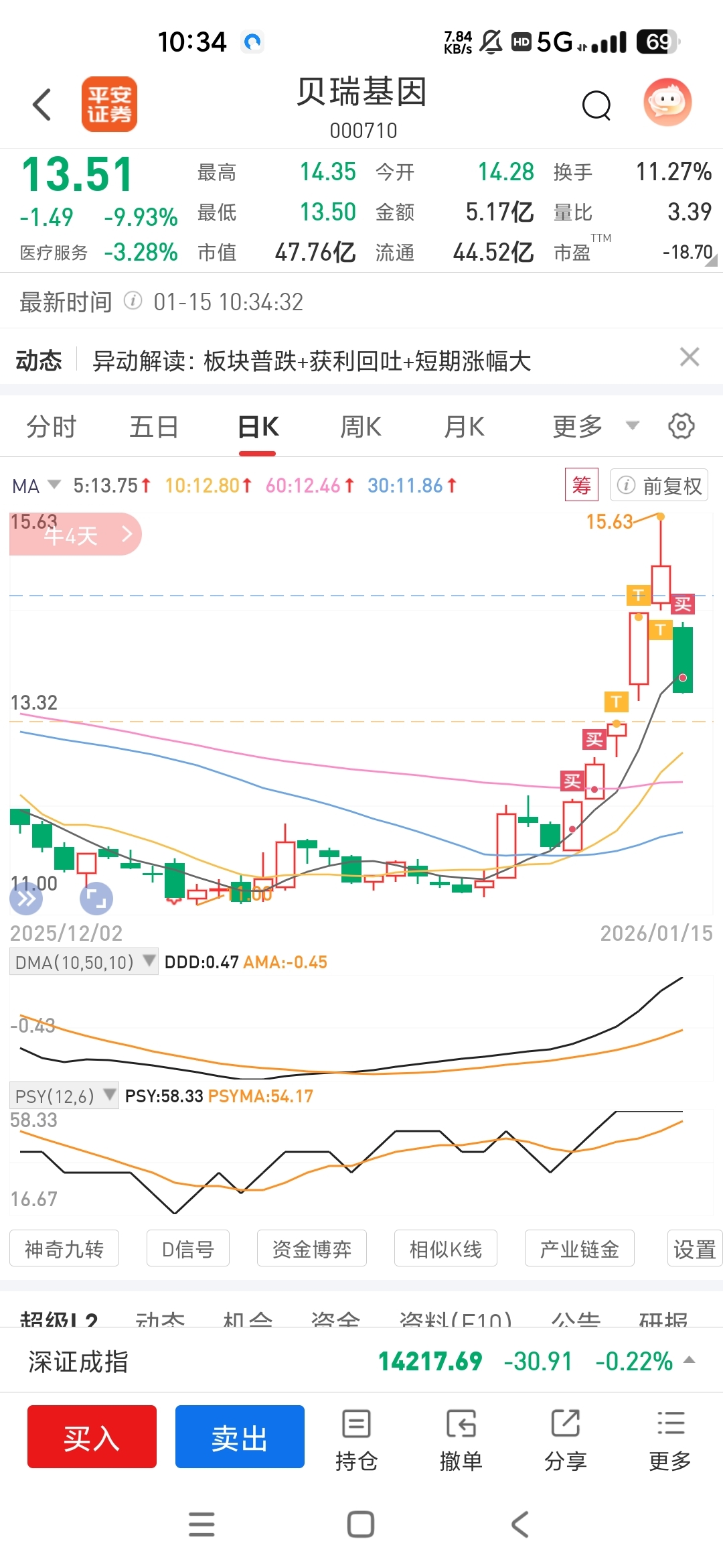 $贝瑞基因(SZ000710)$ 干,哪有上涨行情一下子就就结束的,生死由命了,散户不就是赌徒嘛