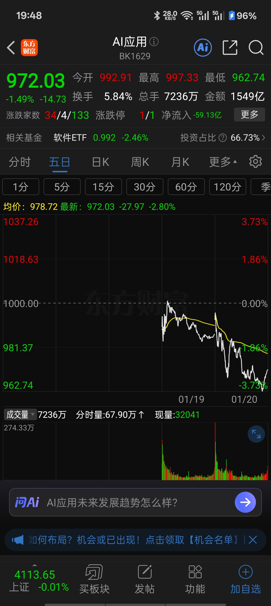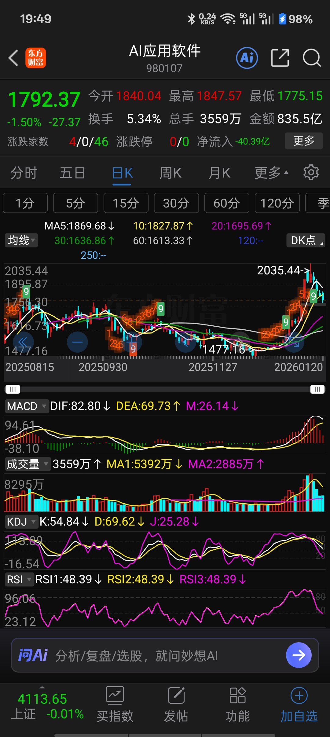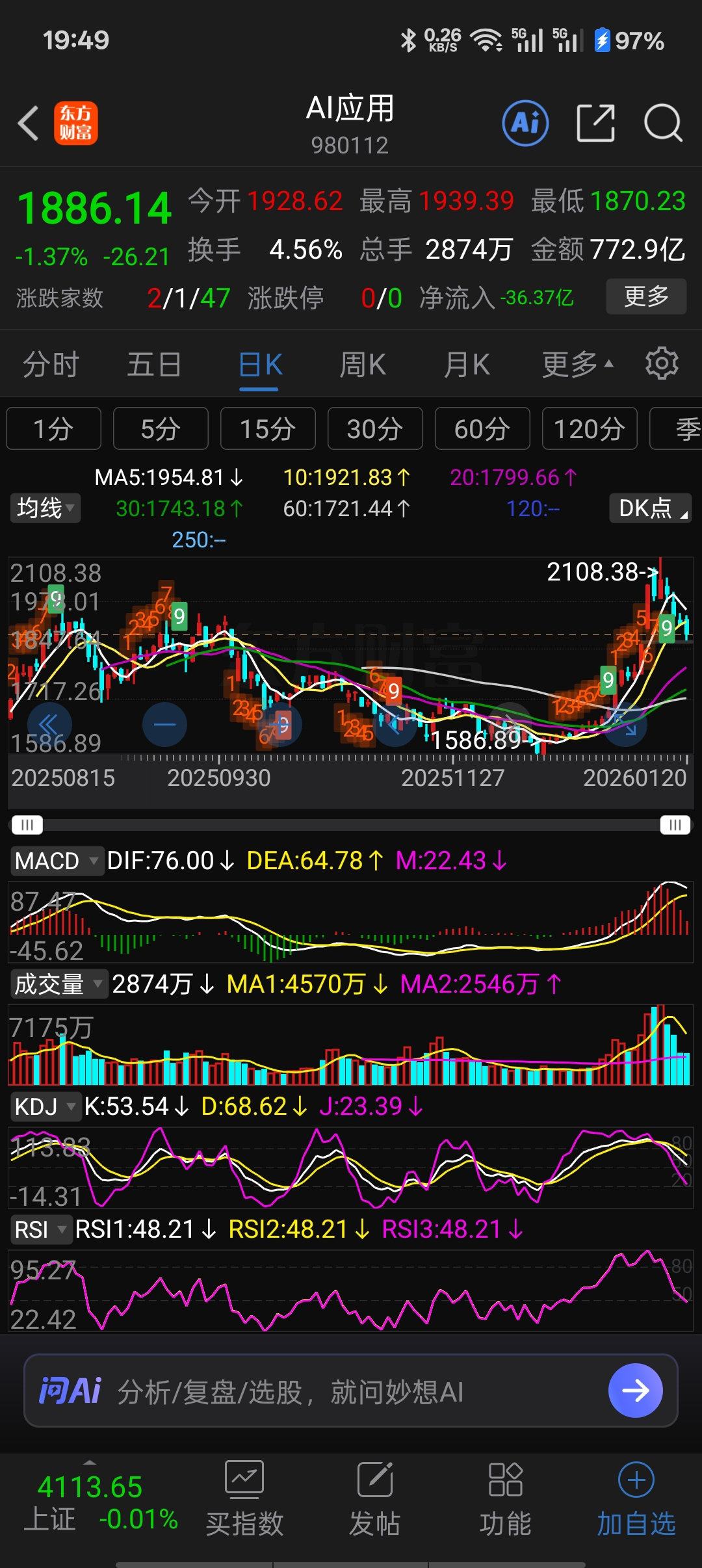 新增AI应用概念有啥用呢?各指数都被压下来了。
