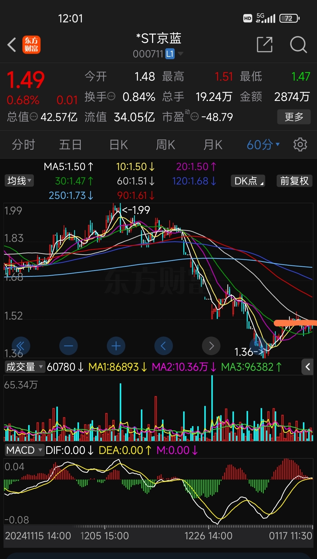 该涨的时候没力,形成一个小平台还不是下跌中继?没见过京蓝可以在小平台涨上去的,有的话请出示历史截图,欢迎围喷