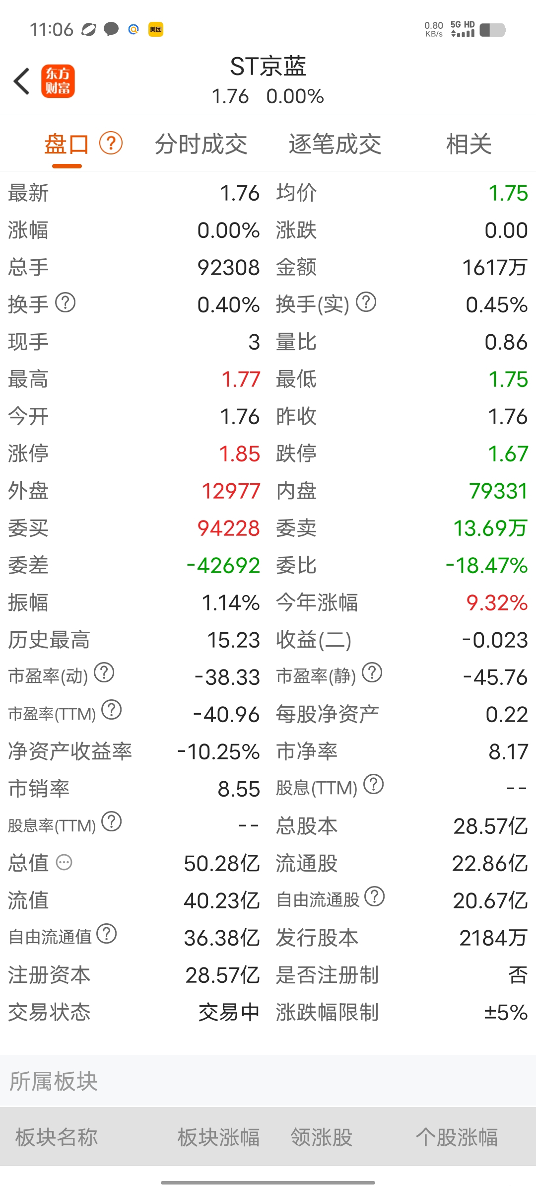 $ST京蓝(SZ000711)$ 里边根本没人买了,一上午就 1.2万手买单,能涨就怪了