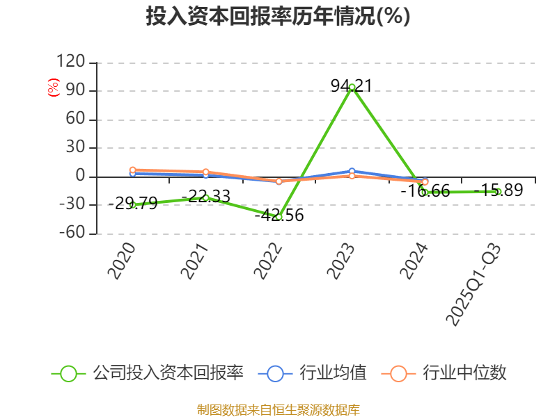 盈利能力方面, 2025年前三季度公司加权平均净资产收益率为-16.85%,同比下降7.48个百分点。公司2025年前三季度投入资本回报率为-15.89%,较上年同期下降5.57个百分点。