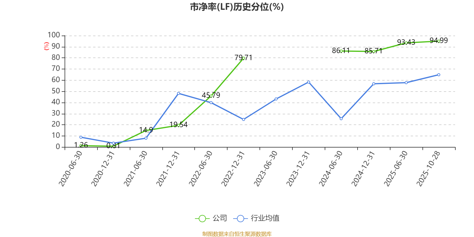 市盈率、市净率为负时,不显示当期分位数,会导致折线图中断。