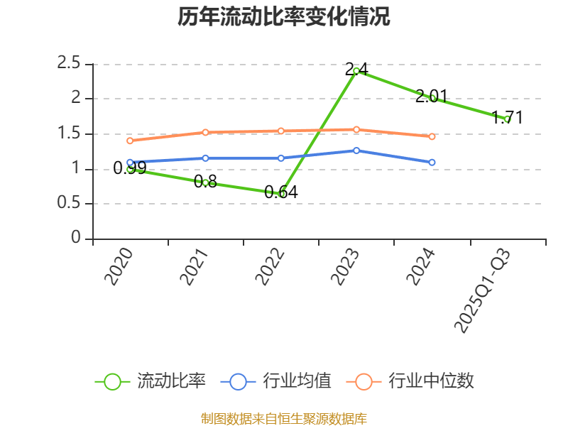 2025年前三季度,公司流动比率为1.71,速动比率为1.35。