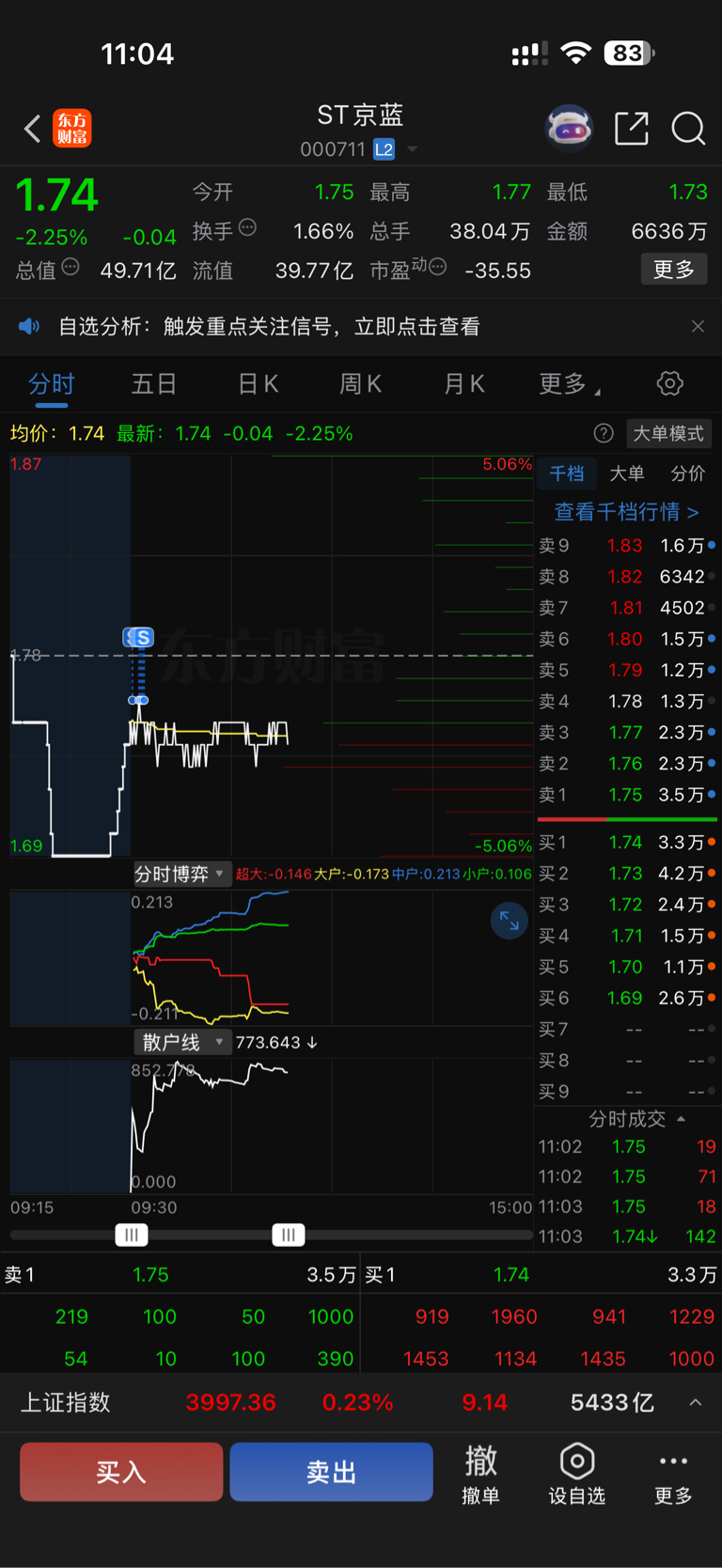 $ST京蓝(SZ000711)$ 感谢不杀之恩亏一分跑路