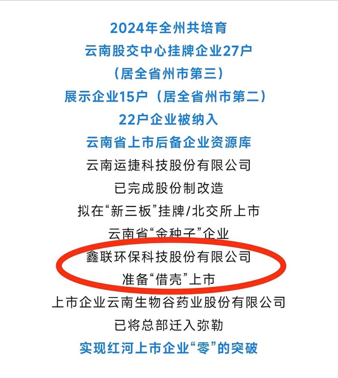 $ST京蓝(SZ000711)$ $2025年12.31前启动鑫联环保资产注入,无论是鑫联环保官网还是办公地都挂上了京蓝股票代码,还有鑫联所在地红河州政府官方公众号也提到了借壳上市,资产注入迫在眉睫。鑫联全部团队基本加入京蓝了。