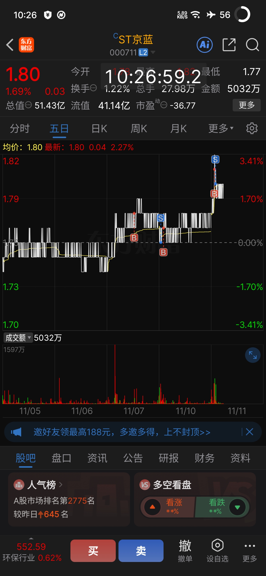$ST京蓝(SZ000711)$ 短线噩梦,被反复拿捏!