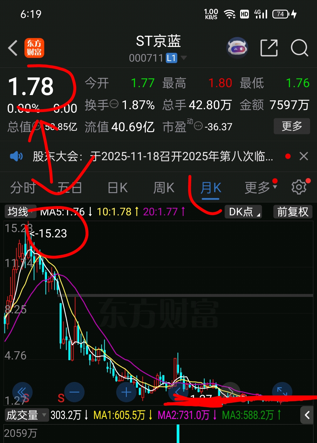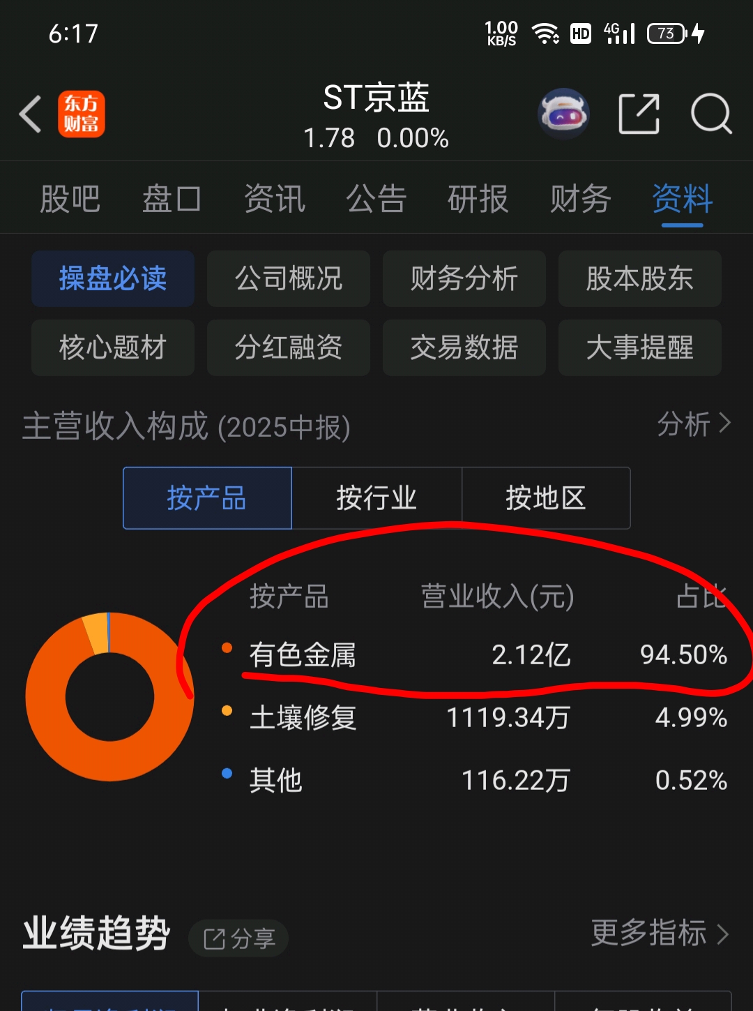 $ST京蓝(SZ000711)$ 小金属有色金属收入94%,ST板块指数3400上涨到7600,上涨了220%涨了2.2倍,有色金属小金属指数也涨了1.5倍,本公司15元跌到1.7元一直不上涨,好意思在有色金属,ST板块待着吗?