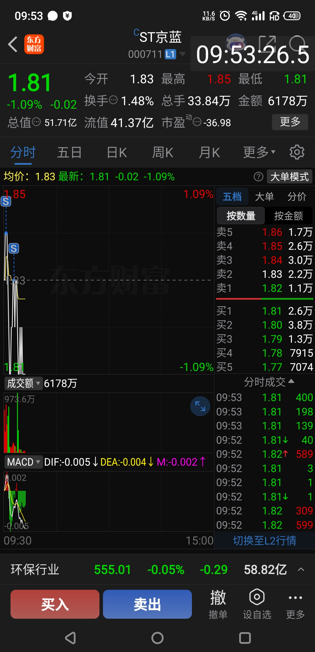 $ST京蓝(SZ000711)$ 微赚先出,这京蓝走势神经兮兮的!