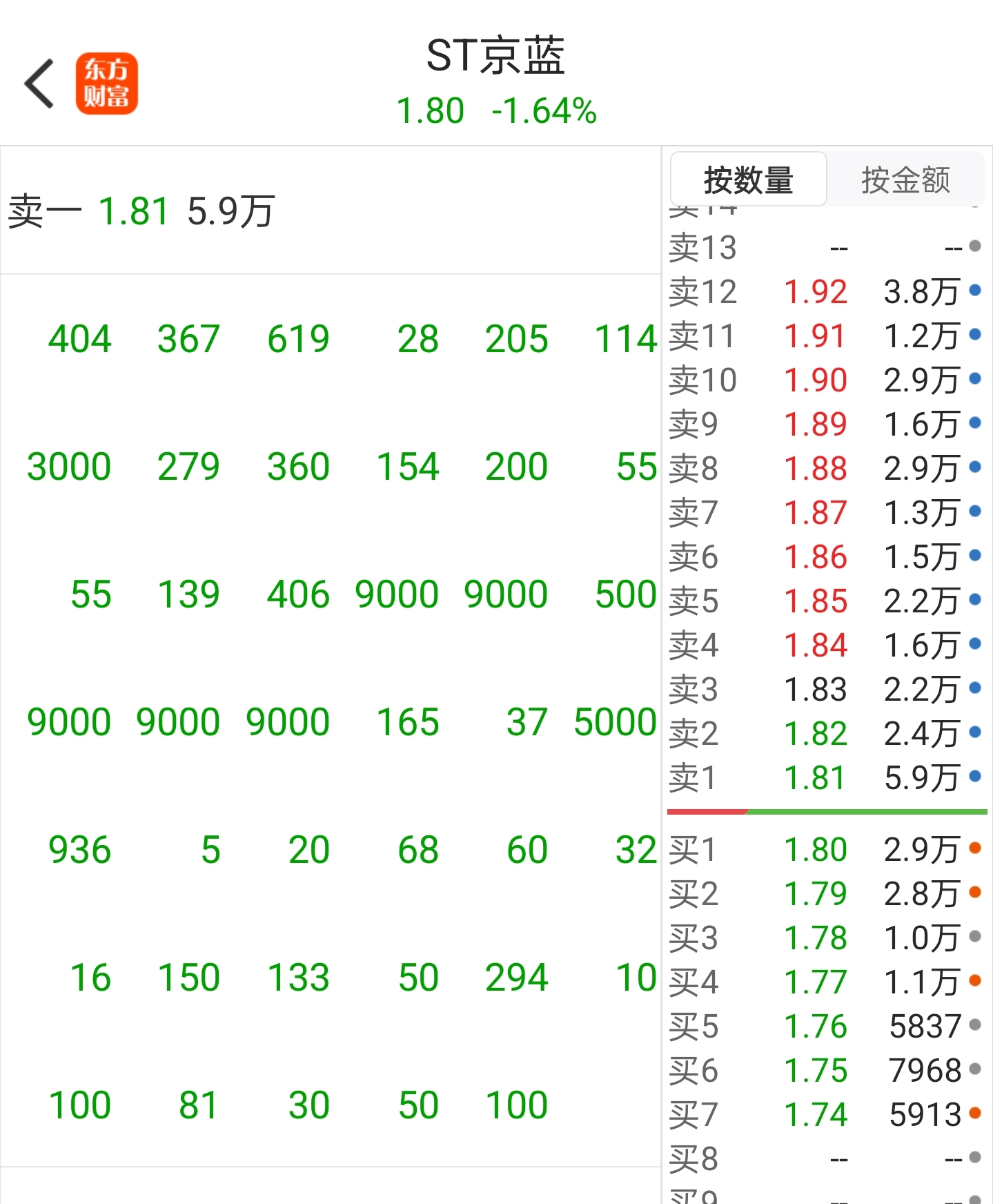 $ST京蓝(SZ000711)$ 几笔9000手的压单集中委托,庄家打压股价决心比较大。