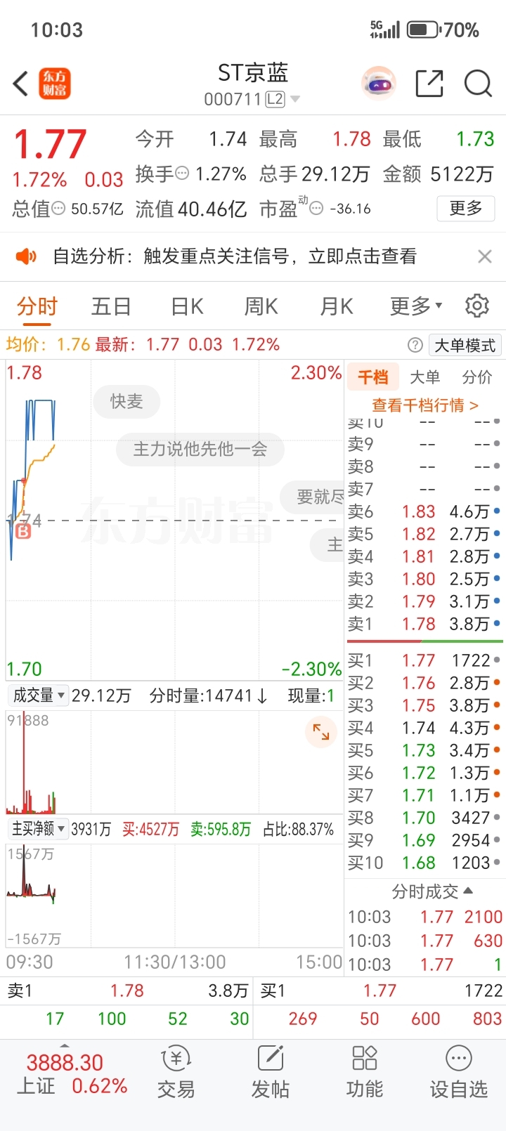 $ST京蓝(SZ000711)$ 注意安全,别追高,不然主力把你挂山顶上