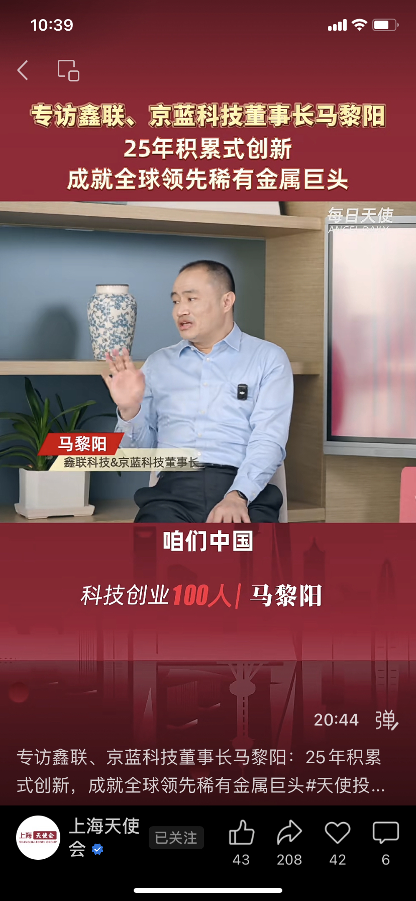 $ST京蓝(SZ000711)$ 25年积累式创新 成就全球领先稀有金属巨头
