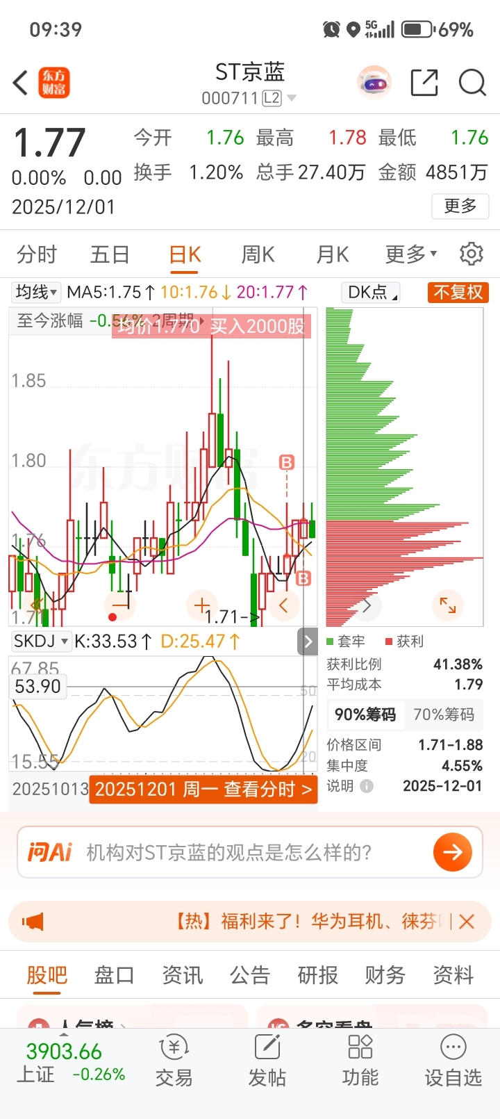 $ST京蓝(SZ000711)$ 1.8是压力位,因为涨到1.8我就挂单卖出。主力你好自为之吧!
