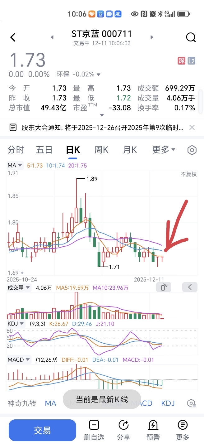 $ST京蓝(SZ000711)$ 金针探底又探底是啥意思??
