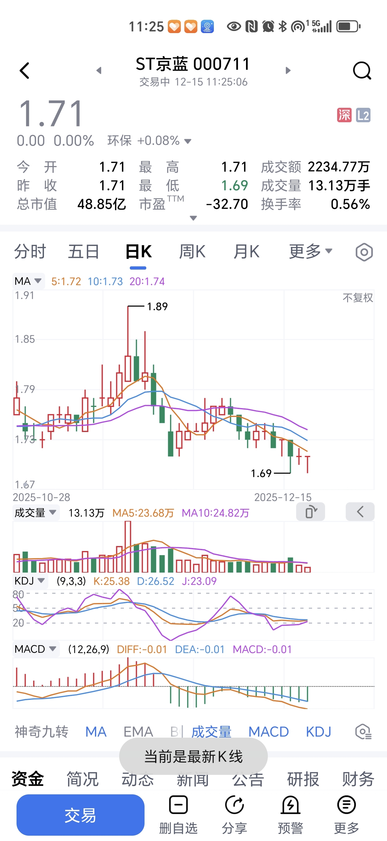 $ST京蓝(SZ000711)$ 金针探底探底又探底,啥时候不探底
