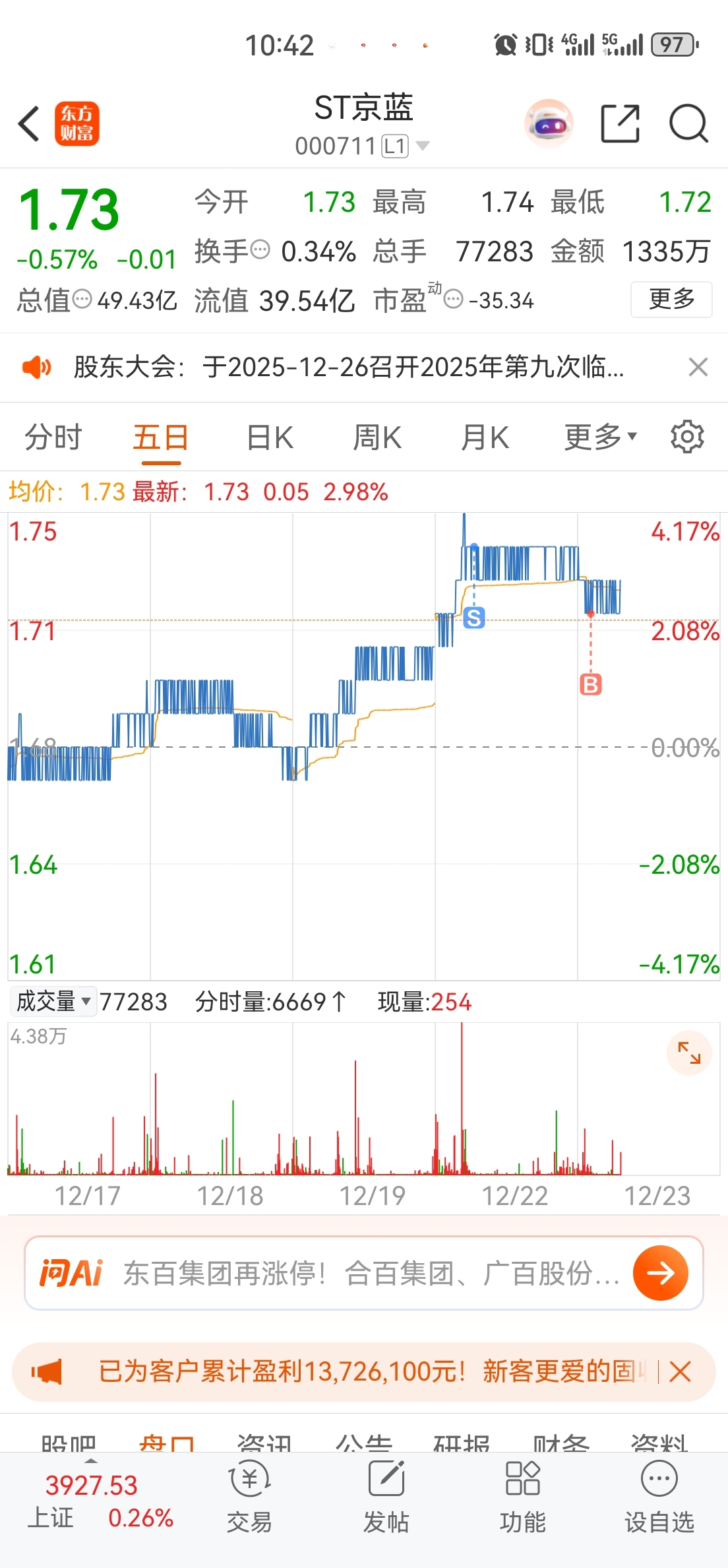 温馨提示: 1.根据《证券法》规定,禁止编造、传播虚假信息或者误导性信息,扰乱证券市场;2.用户在本社区发表的所有资料、言论等仅代表个人观点,与本网站立场无关,不对您构成任何投资建议。用户应基于自己的独立判断,自行决定证券投资并承担相应风险。《东方财富社区管理规定》
