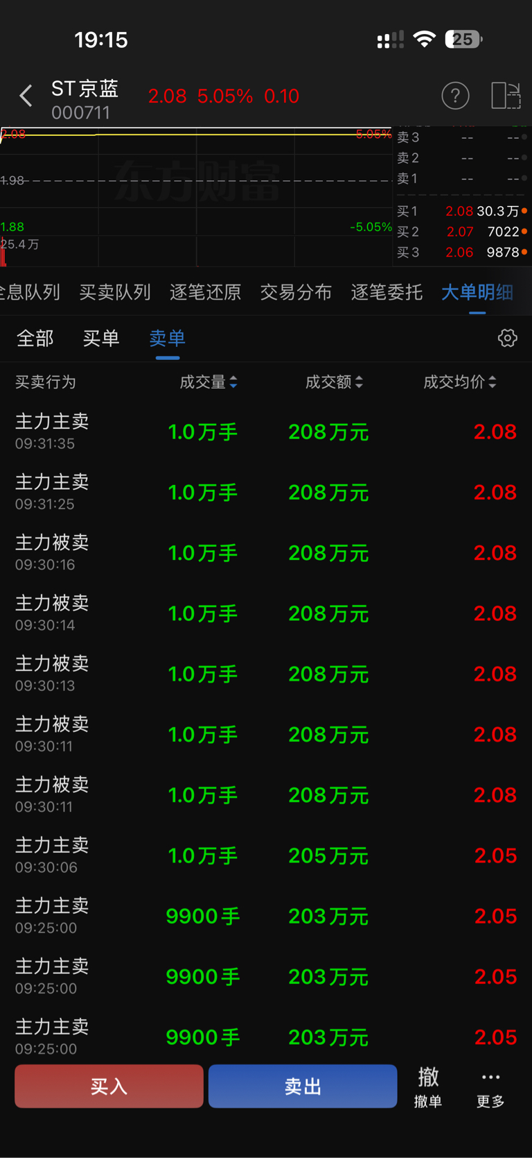$ST京蓝(SZ000711)$ 今天早盘集合竞价和开盘 1 分钟阶段,起码有 16 个万手大单砸盘都没砸开后面封单还增加了,你以为你们明天买得进去吗?