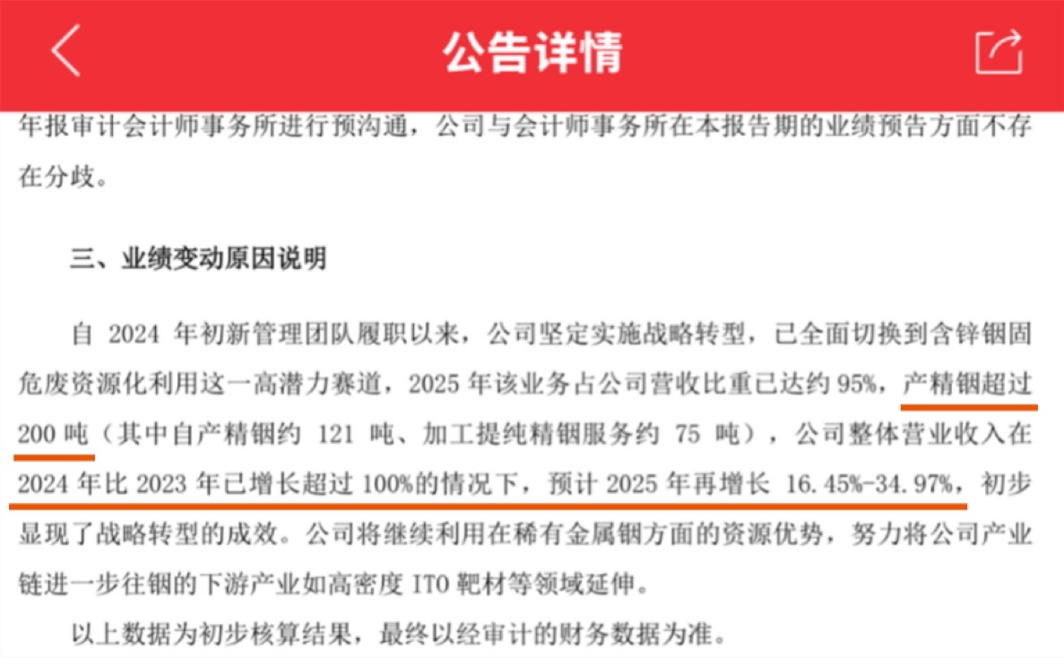 $ST京蓝(SZ000711)$ 业绩预告:2025产粗铟200吨,占总营收的95%,将继续向产业链下游延伸,高密度ITO靶材。