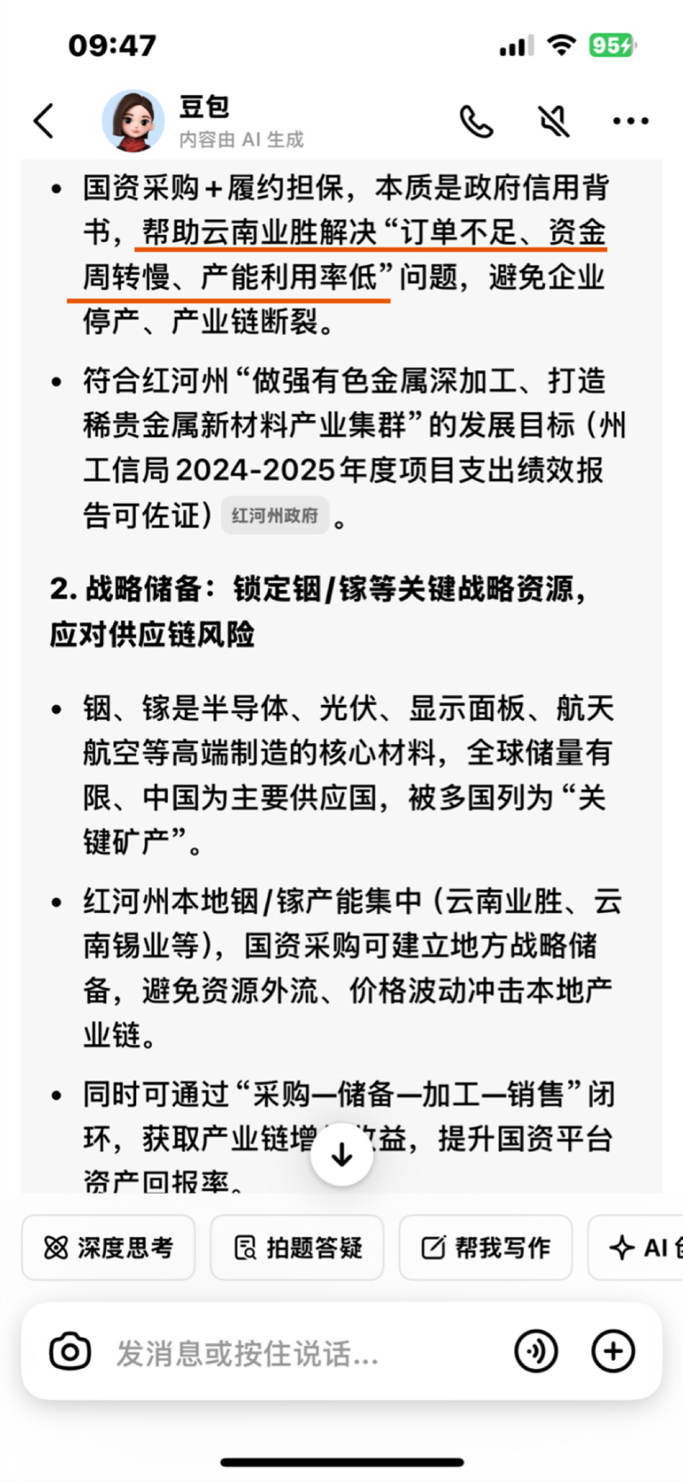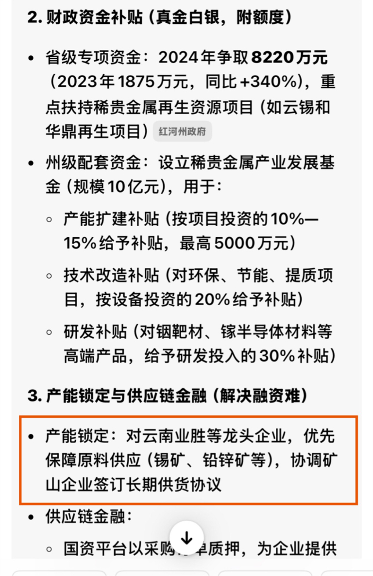 • 本质:红河州国资以“采购预付款/订单”形式,为云南业胜提供流动性支持,同时锁定本地稀贵金属(铟/镓/靶材)产能,服务地方“稀贵金属产业链集群”战略(红河州“十五五”规划重点)。