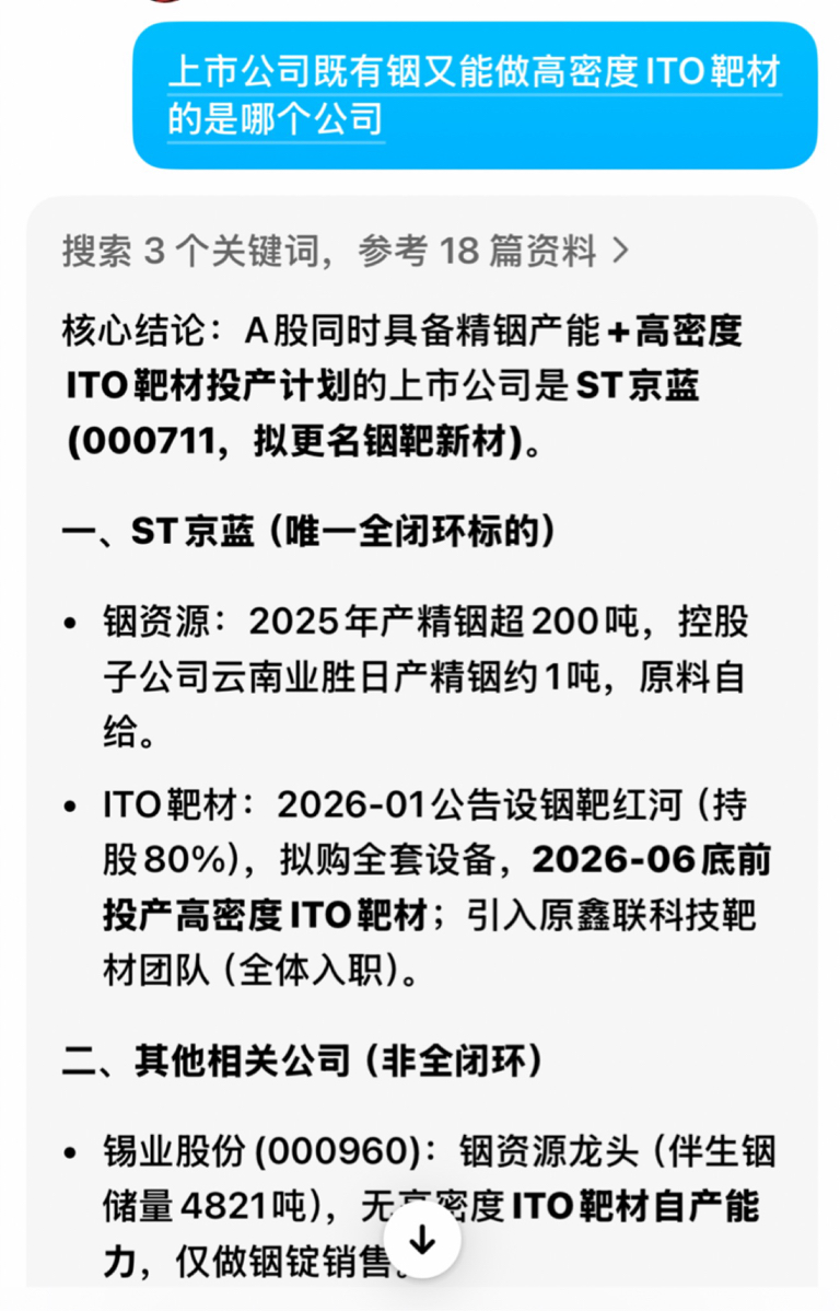 但A股上市公司既有铟,又能做高密度ITO靶材的,只此一家:铟靶新材。