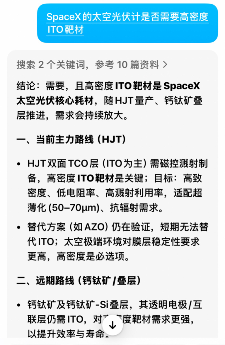 • 100 GW 太空光伏 ≈ 1077 吨靶材