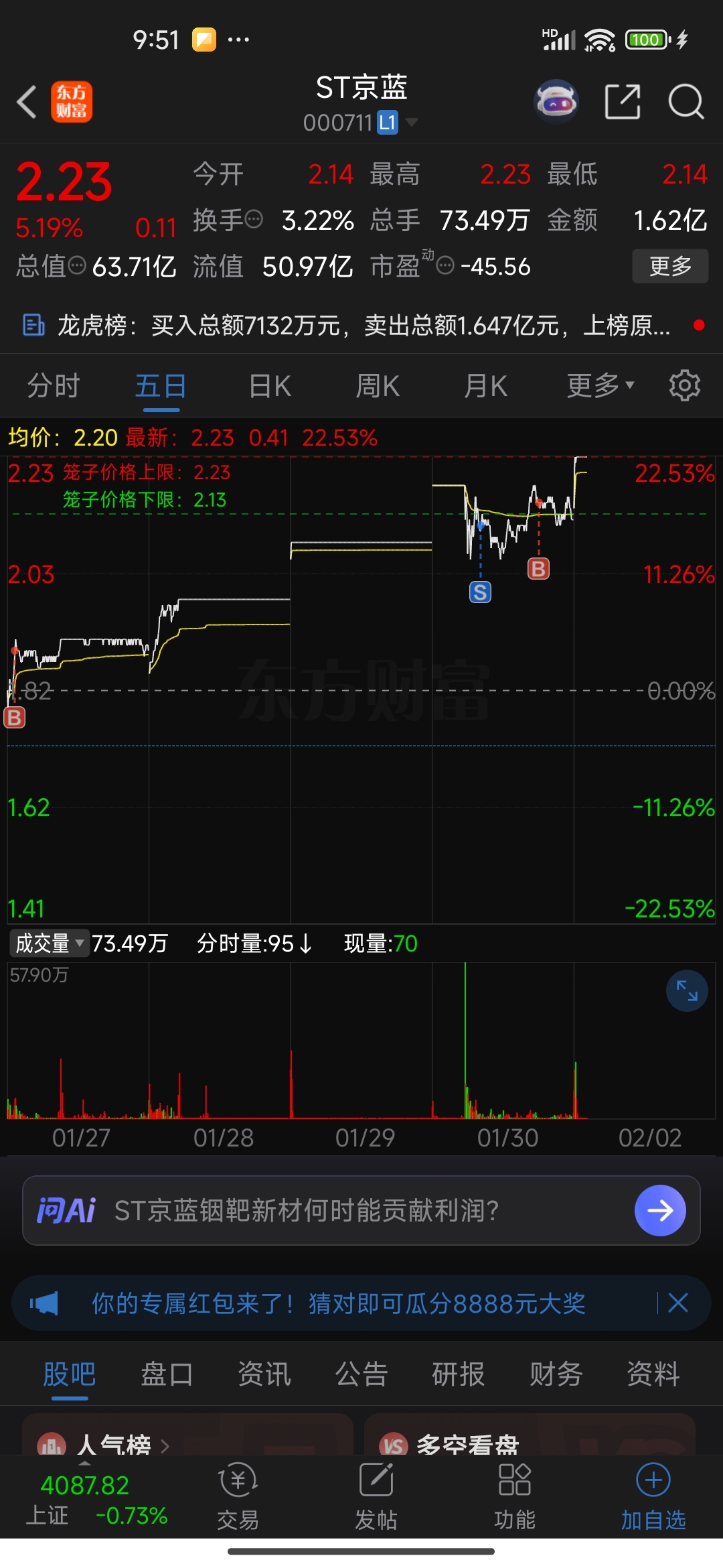 $ST京蓝(SZ000711)$ 还好留了三分之一仓位
