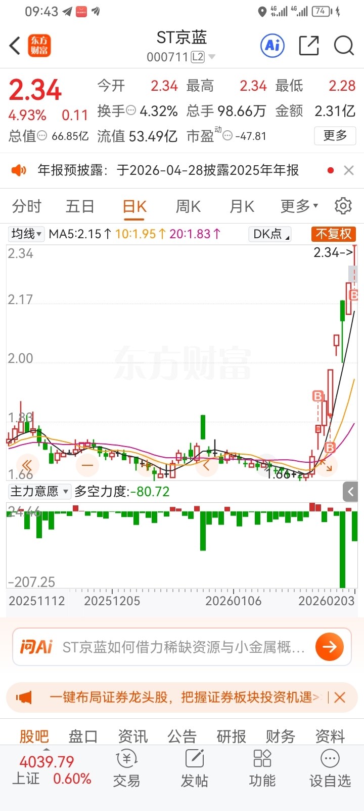 $ST京蓝(SZ000711)$ 守护京蓝我是认真的