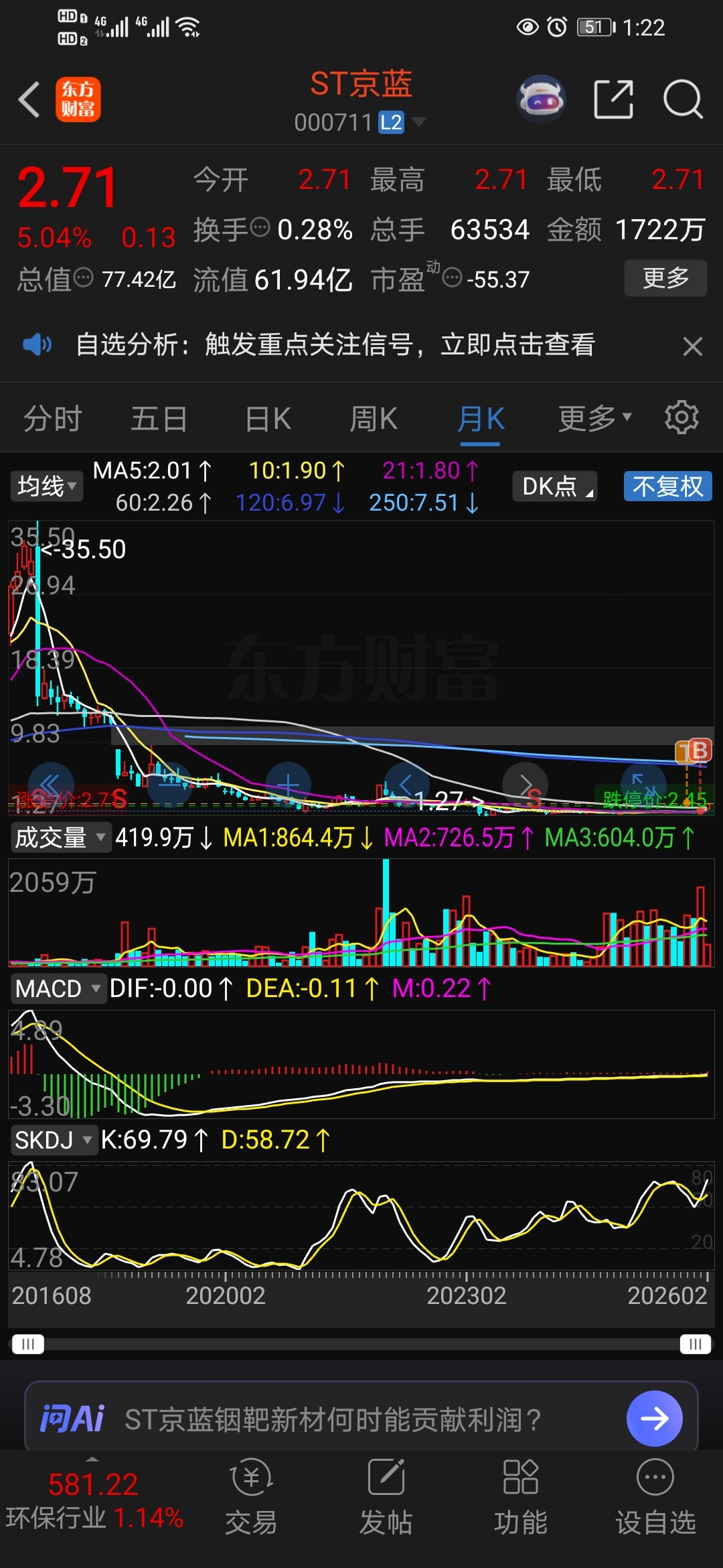 $ST京蓝(SZ000711)$ 没更名,没摘帽,两块多钱,这位置高吗?