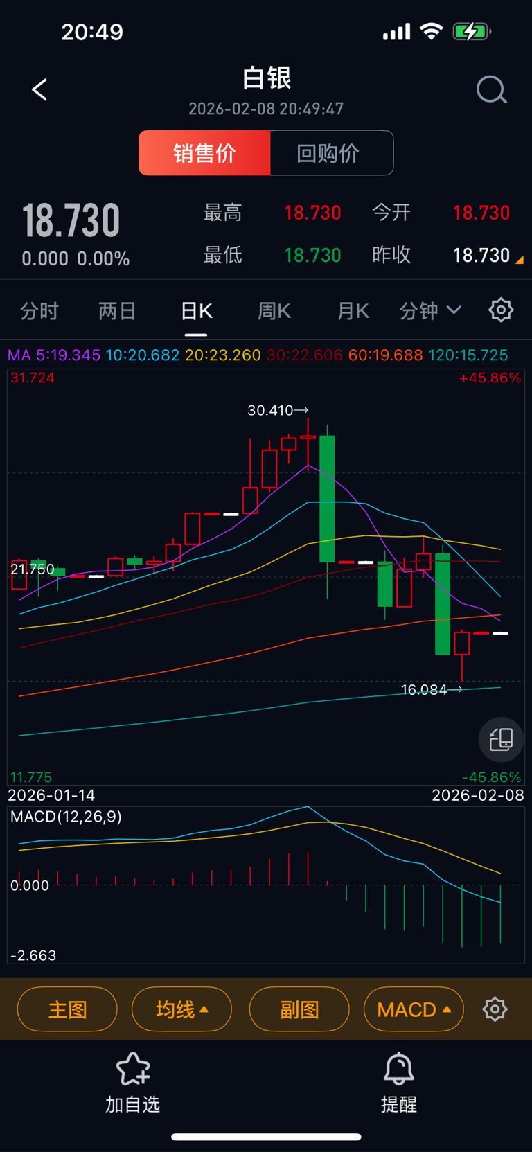 白银暴跌50%,铟也跌了10%,金属已经形成下降通道了,后面还会跌,不要追高山顶