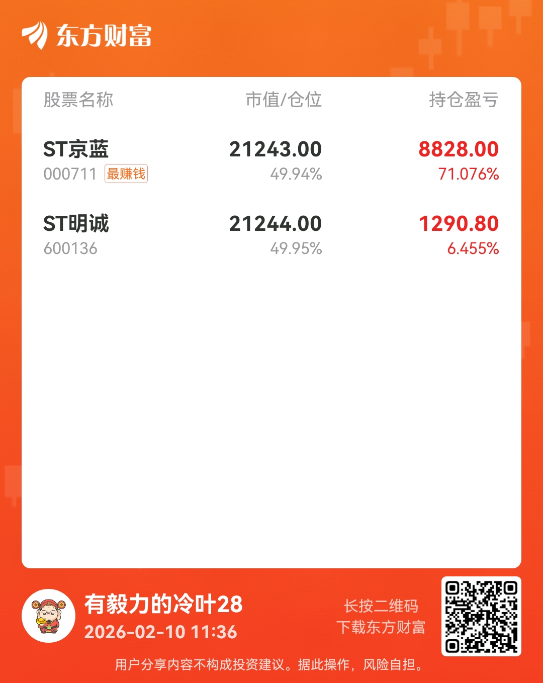 温馨提示: 1.根据《证券法》规定,禁止编造、传播虚假信息或者误导性信息,扰乱证券市场;2.用户在本社区发表的所有资料、言论等仅代表个人观点,与本网站立场无关,不对您构成任何投资建议。用户应基于自己的独立判断,自行决定证券投资并承担相应风险。《东方财富社区管理规定》