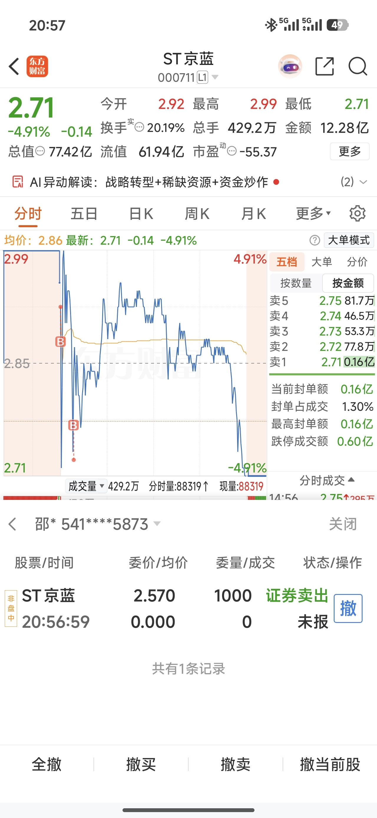 $ST京蓝(SZ000711)$ 开始挂单跑路