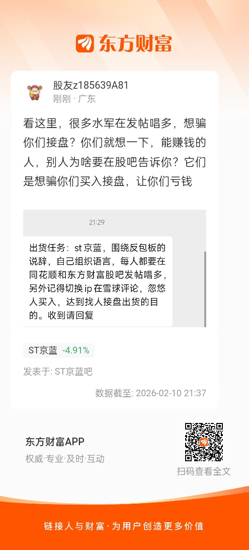 温馨提示: 1.根据《证券法》规定,禁止编造、传播虚假信息或者误导性信息,扰乱证券市场;2.用户在本社区发表的所有资料、言论等仅代表个人观点,与本网站立场无关,不对您构成任何投资建议。用户应基于自己的独立判断,自行决定证券投资并承担相应风险。《东方财富社区管理规定》
