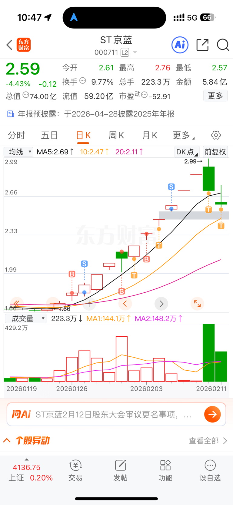 $ST京蓝(SZ000711)$ 气死我了回吐15% 永远留下底仓翻倍股一定给我拿下
