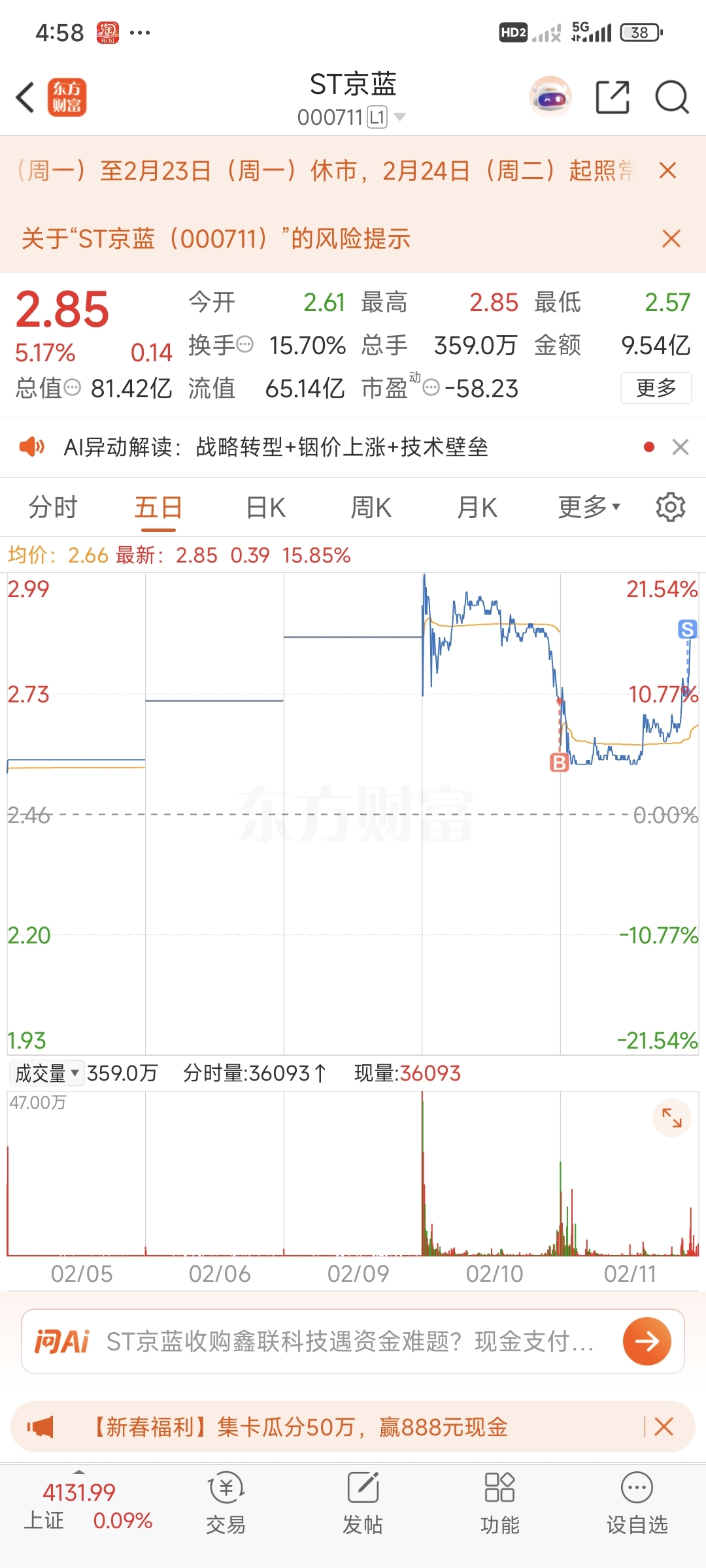 $ST京蓝(SZ000711)$ 我就是个笑话