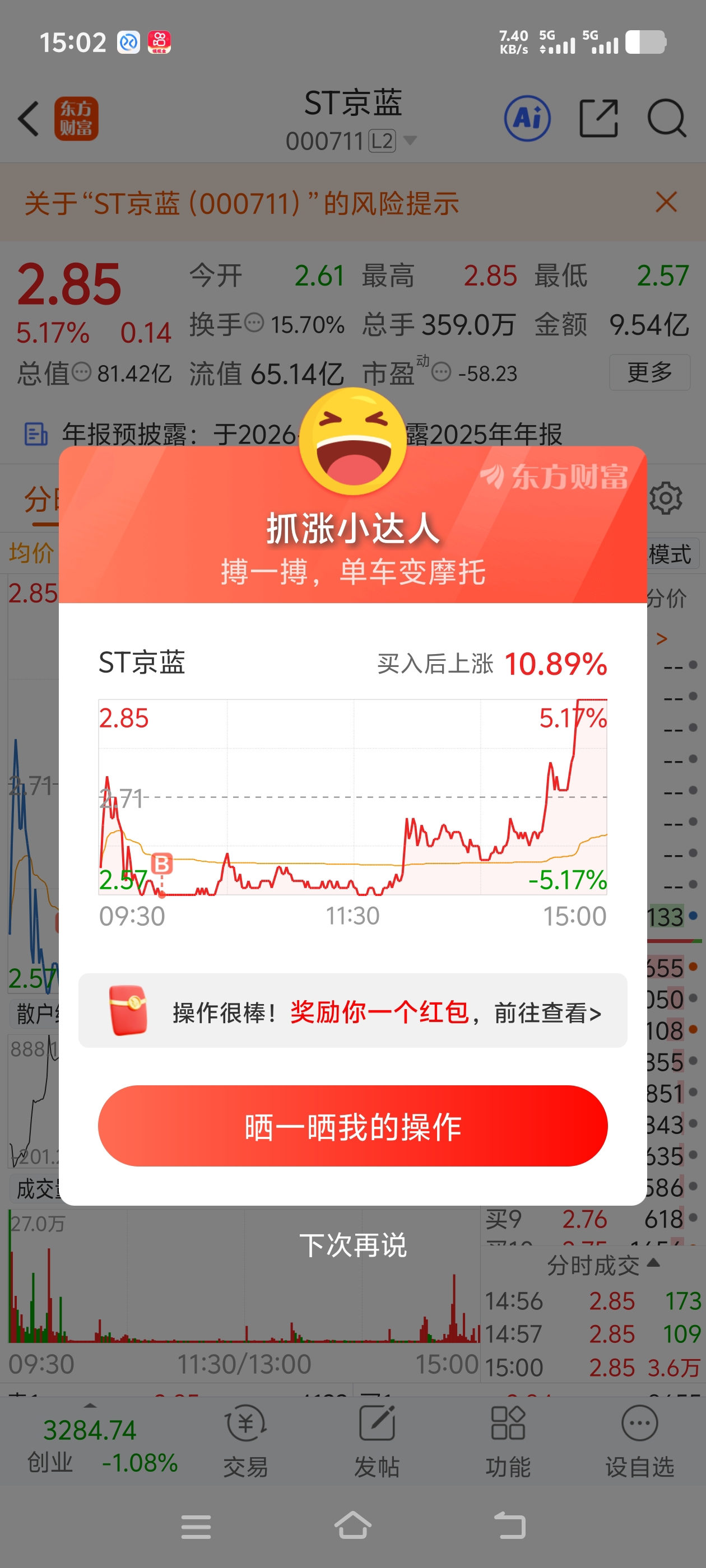 $ST京蓝(SZ000711)$ 坐等几连板