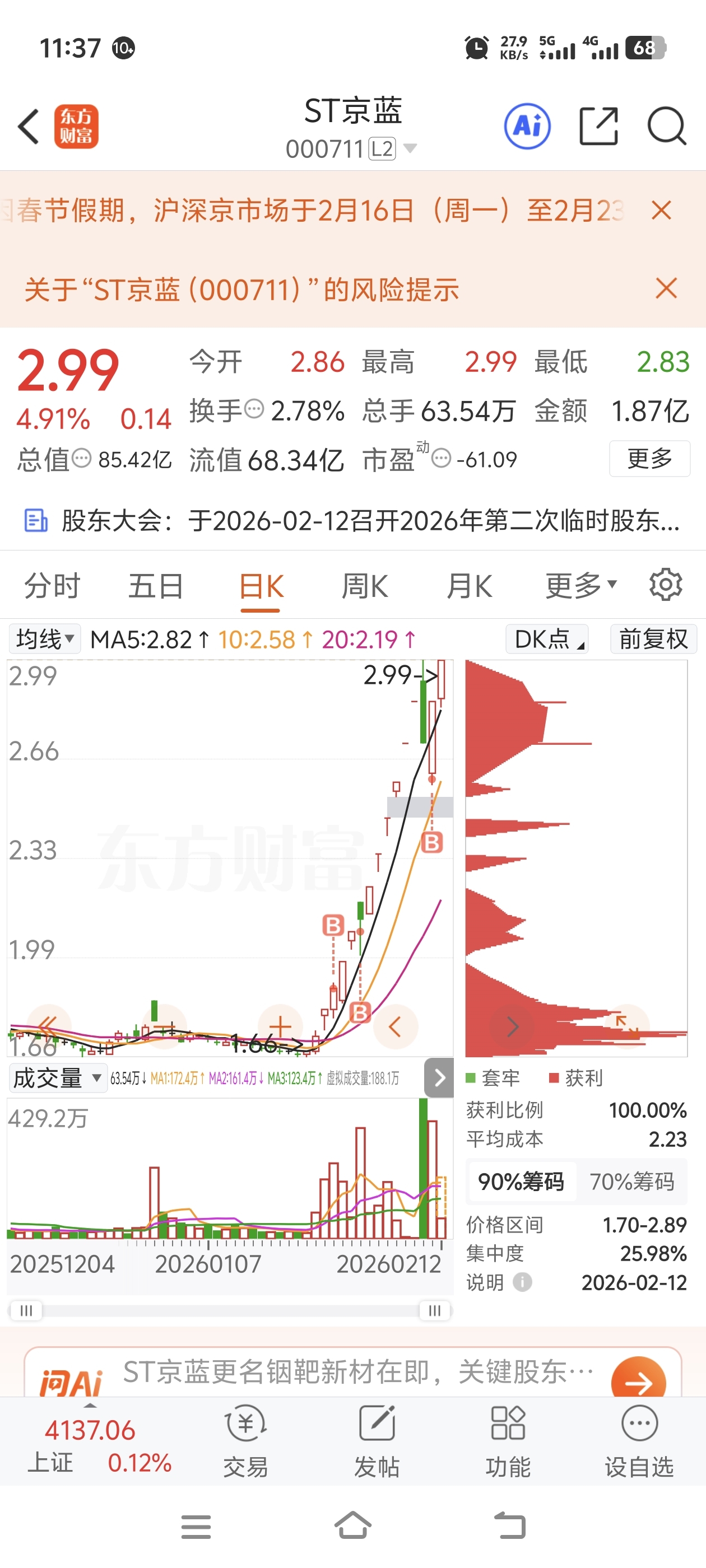 $ST京蓝(SZ000711)$ 没挣啥钱