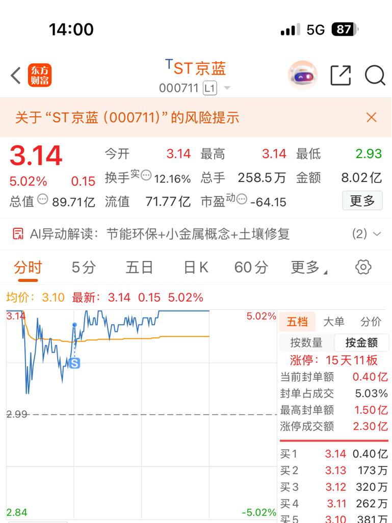 $ST京蓝(SZ000711)$ 筹码被骗走一半,只剩一半了