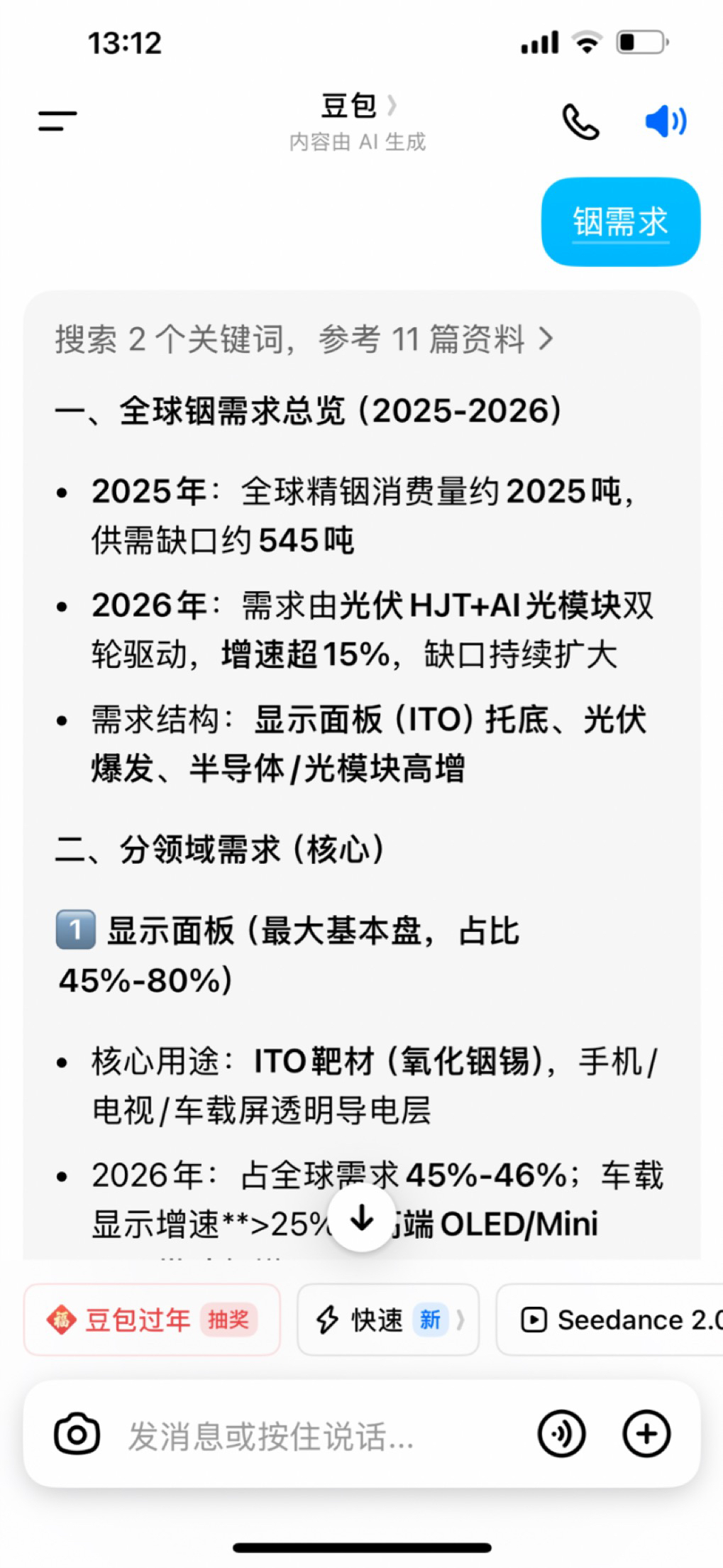 2026年铟需求持续增长,供应缺口持续扩大,铟涨价是必然
