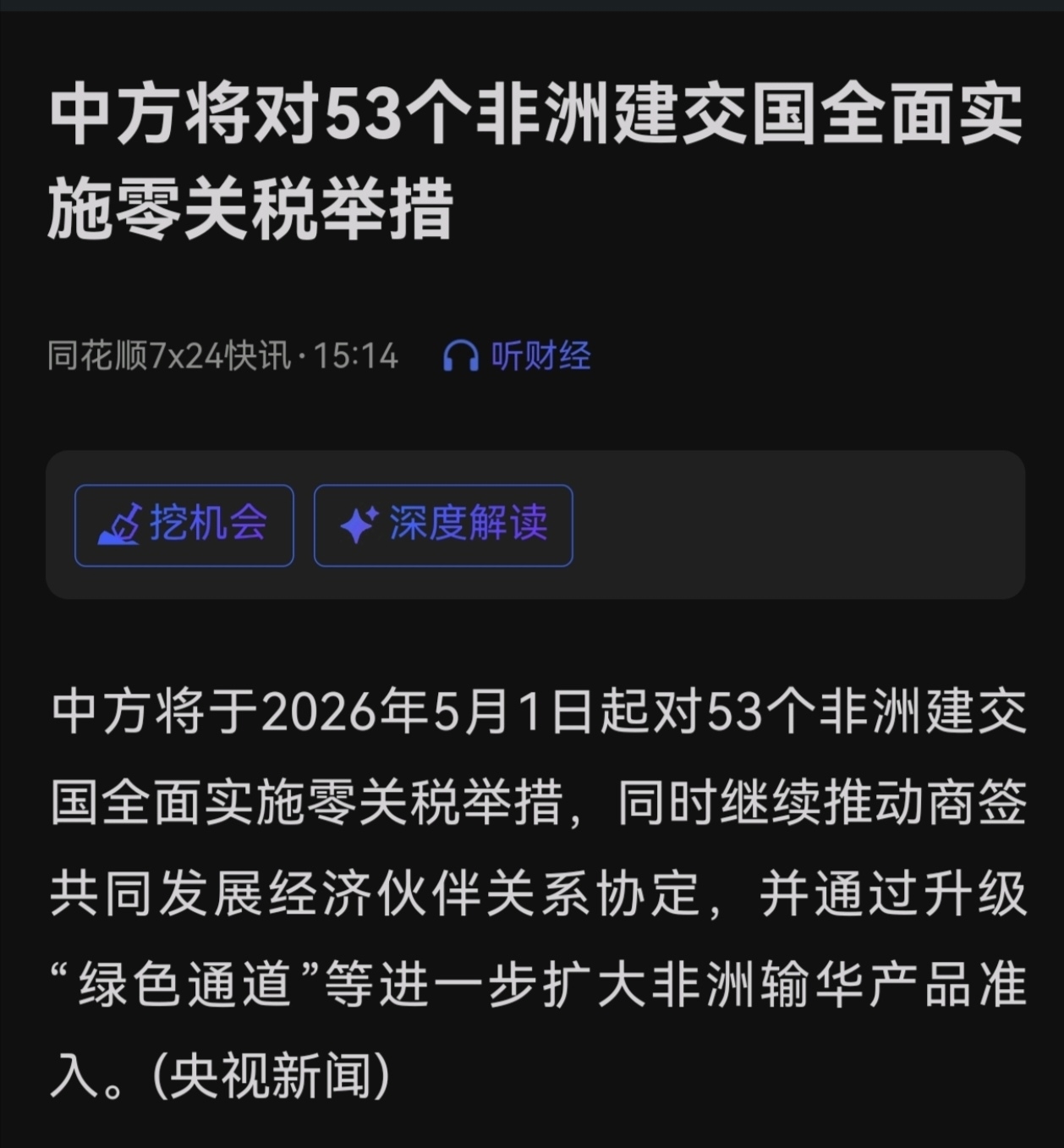 突发!!央视新闻:中国宣布对南非在内的53个国家实施0关税!!京蓝12月刚在南非