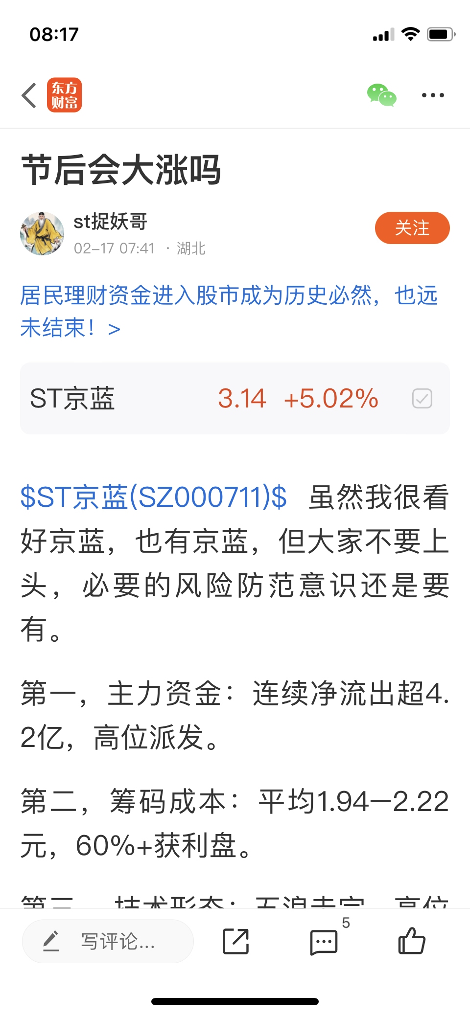 这个大佬说的有道理。蓝蓝大概率会调整。当初宏达股份在八块多我认为是庄家出货。确实
