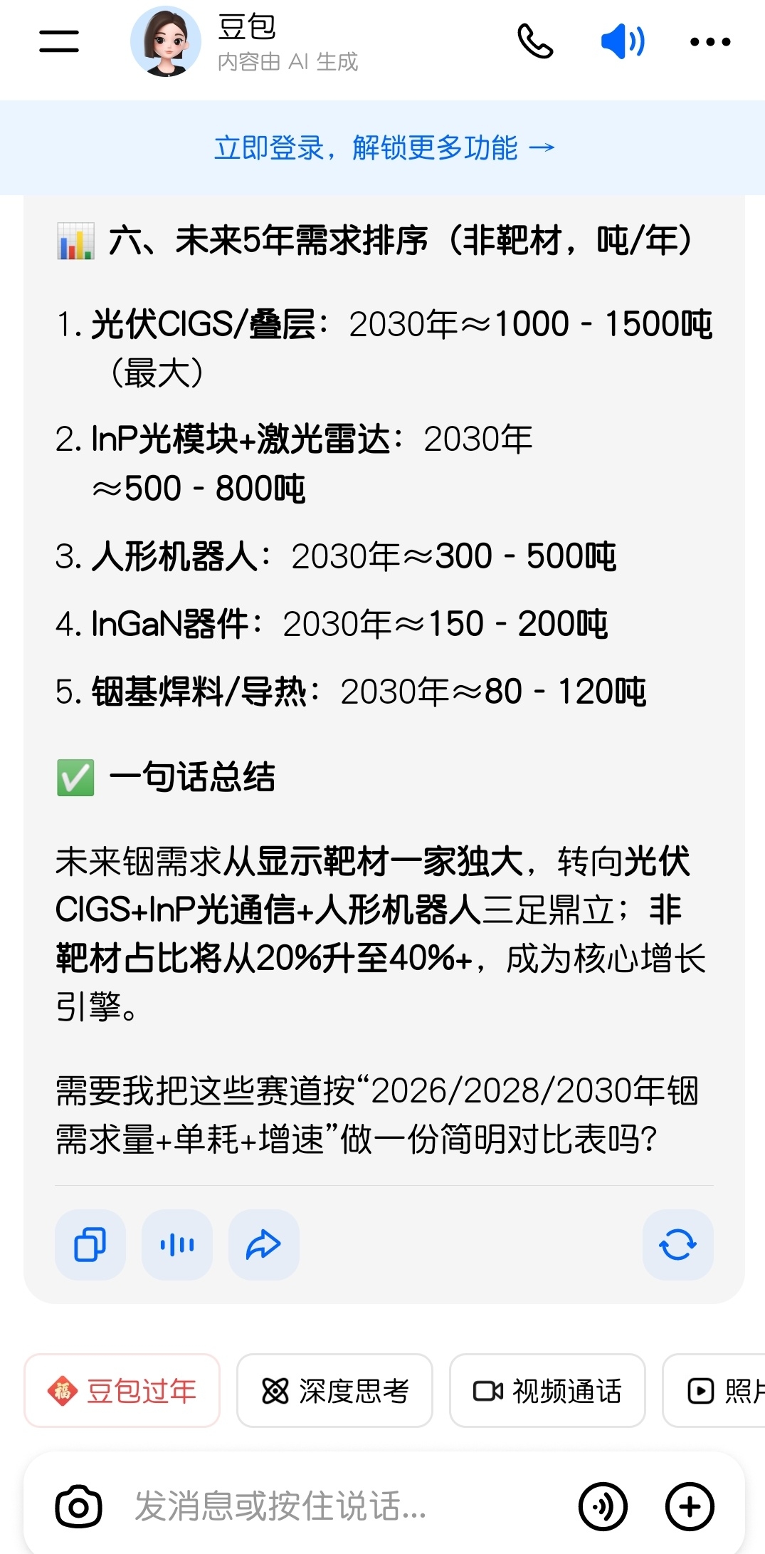 光伏+激光雷达+机器人+铟靶材。都是后面主流需求
