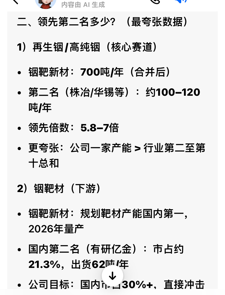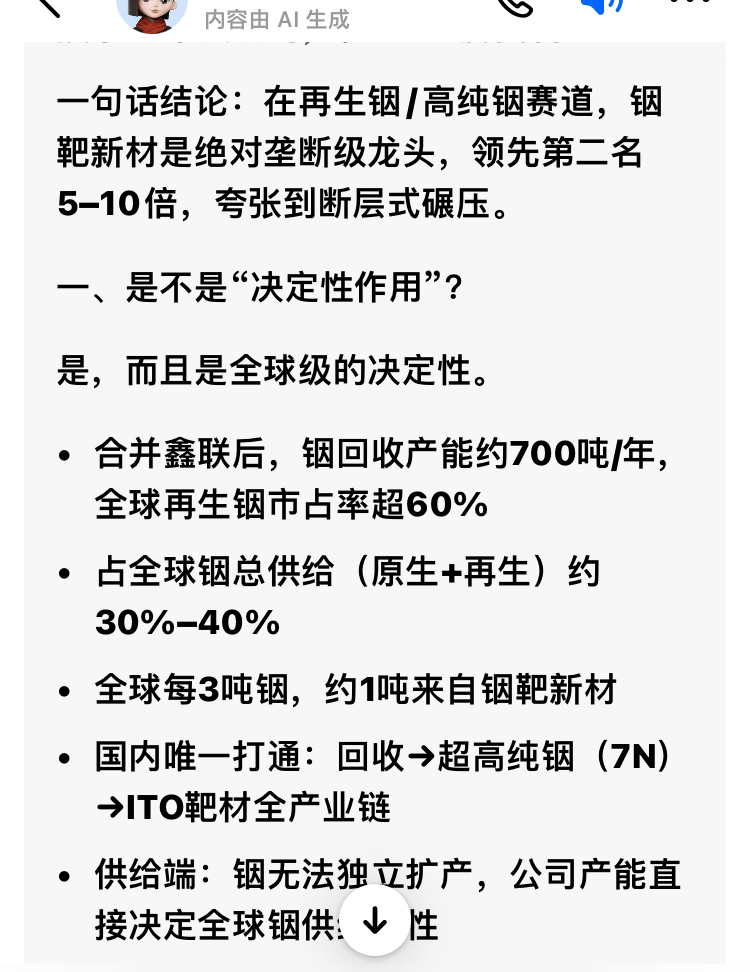 “垄断级龙头”“断层式碾压”“一家顶行业第二到第十总和”/“领先第二名5-10倍”……让我们一起见证,未来全球铟产业链霸主的崛起