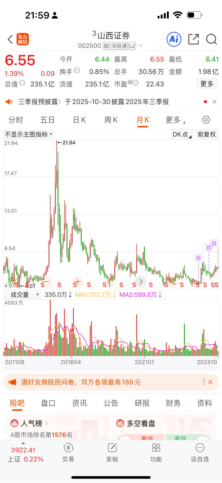 温馨提示: 1.根据《证券法》规定,禁止编造、传播虚假信息或者误导性信息,扰乱证券市场;2.用户在本社区发表的所有资料、言论等仅代表个人观点,与本网站立场无关,不对您构成任何投资建议。用户应基于自己的独立判断,自行决定证券投资并承担相应风险。《东方财富社区管理规定》